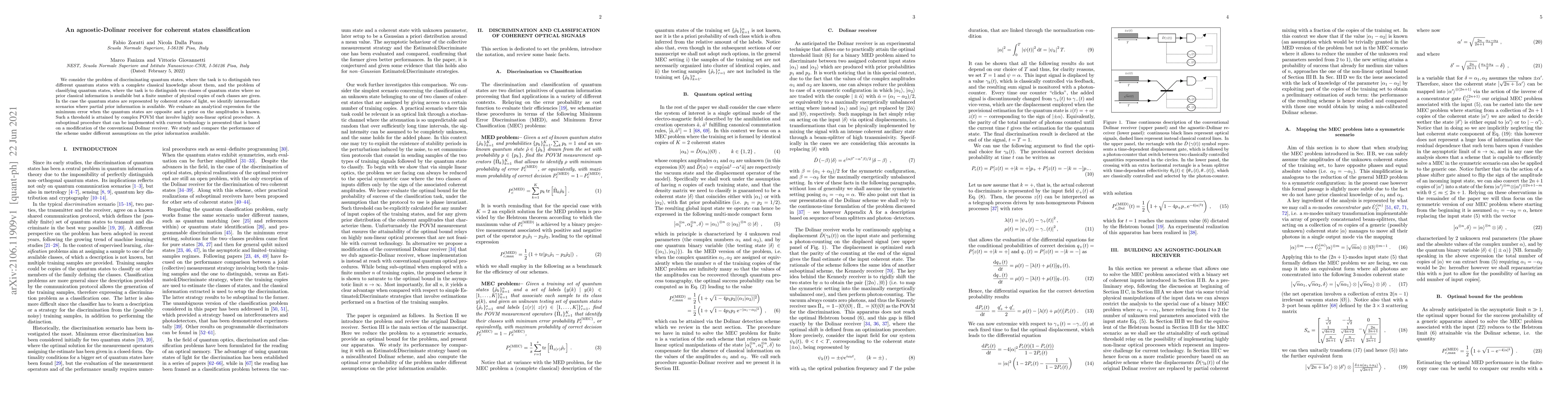 We consider the problem of discriminating quantum states, where the task is to distinguish two different quantum states with a complete classical knowledge about them, and the problem of classifying quantum states, where the task is to distinguish two classes of quantum states where no prior classical information is available but a finite number of physical copies of each classes are given. In the case the quantum states are represented by coherent states of light, we identify intermediate scenarios where partial prior information is available. We evaluate an analytical expression for the minimum error when the quantum states are opposite and a prior on the amplitudes is known. Such a threshold is attained by complex POVM that involve highly non-linear optical procedure. A suboptimal procedure that can be implemented with current technology is presented that is based on a modification of the conventional Dolinar receiver. We study and compare the performance of the scheme under different assumptions on the prior information available.