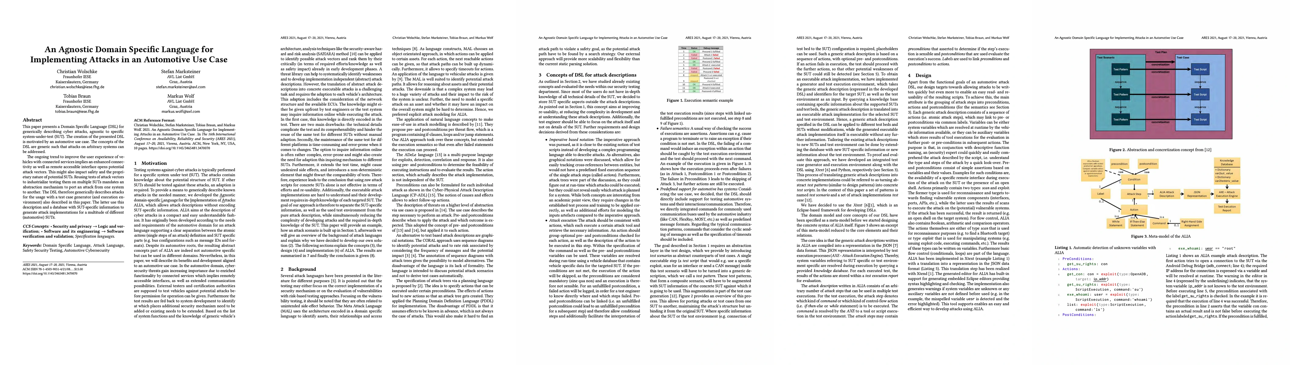 A new Domain Specific Language (DSL) is introduced to describe generic cyber attacks across various systems, with a focus on the automotive use case. The DSL enables the reuse of attack tests on multiple systems by generating specific attack implementations.