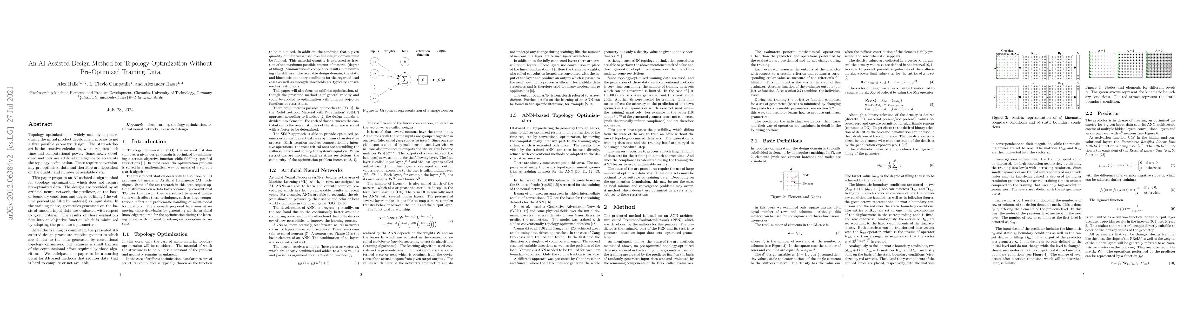 The proposed method uses artificial neural networks to generate optimized geometries based on boundary conditions and material filling, offering a potential starting point for AI-based methods with limited data availability.