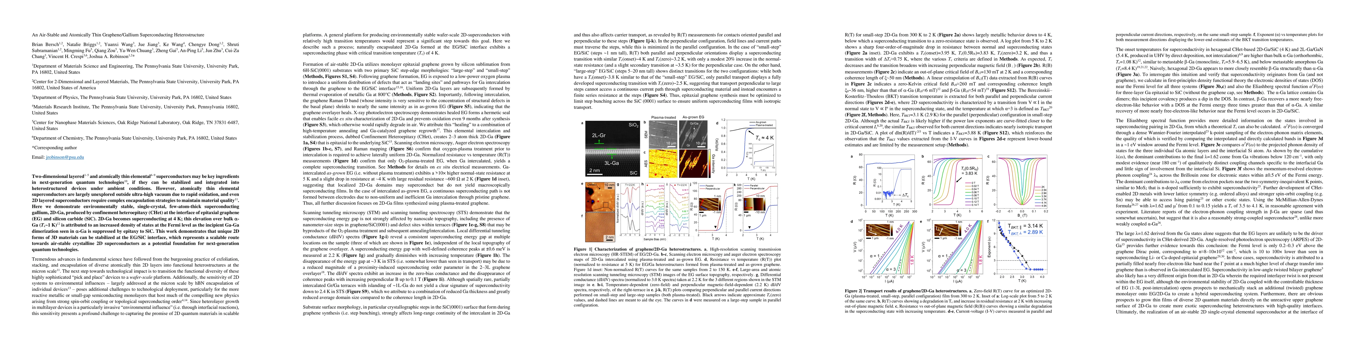 This paper demonstrates the creation of an air-stable, few-atom-thick superconducting gallium layer (2D-Ga) at the interface of epitaxial graphene and silicon carbide using confinement heteroepitaxy. The 2D-Ga exhibits superconductivity at 4 K, significantly higher than bulk gallium, due to suppressed Ga-Ga dimerization and increased density of states at the Fermi level.