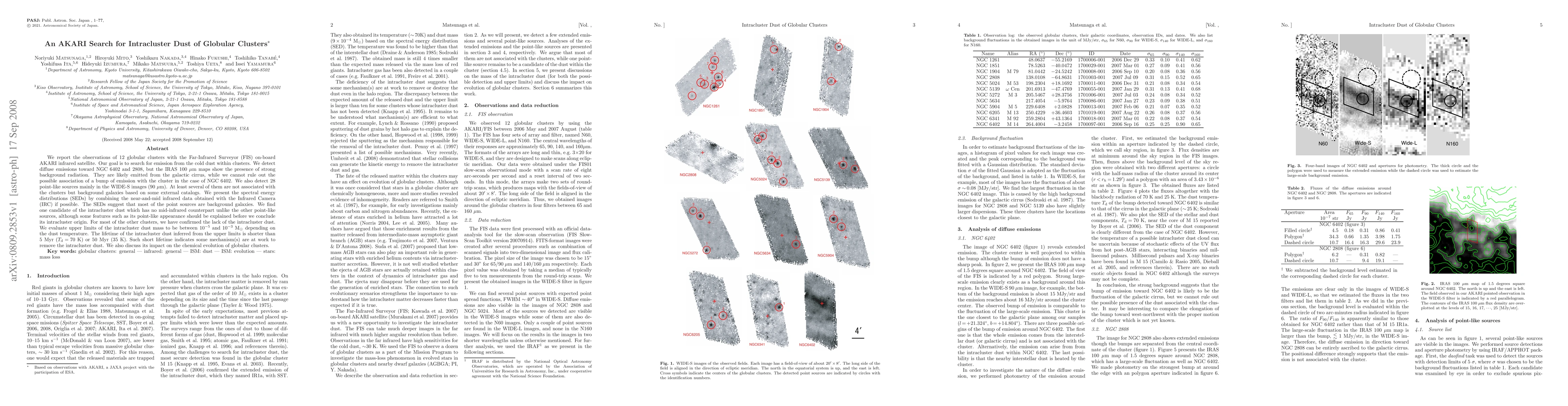 We report the observations of 12 globular clusters with the AKARI/FIS. Our goal is to search for emission from the cold dust within clusters. We detect diffuse emissions toward NGC 6402 and 2808, but the IRAS 100-micron maps show the presence of strong background radiation. They are likely emitted from the galactic cirrus, while we cannot rule out the possible association of a bump of emission with the cluster in the case of NGC 6402. We also detect 28 point-like sources mainly in the WIDE-S images (90 micron). At least several of them are not associated with the clusters but background galaxies based on some external catalogs. We present the SEDs by combining the near-and-mid infrared data obtained with the IRC if possible. The SEDs suggest that most of the point sources are background galaxies. We find one candidate of the intracluster dust which has no mid-infrared counterpart unlike the other point-like sources, although some features such as its point-like appearance should be explained before we conclude its intracluster origin. For most of the other clusters, we have confirmed the lack of the intracluster dust. We evaluate upper limits of the intracluster dust mass to be between 1.0E-05 and 1.0E-03 solar mass depending on the dust temperature. The lifetime of the intracluster dust inferred from the upper limits is shorter than 5 Myr (T=70K) or 50 Myr (35K). Such short lifetime indicates some mechanism(s) are at work to remove the intracluster dust. We also discuss its impact on the chemical evolution of globular clusters.