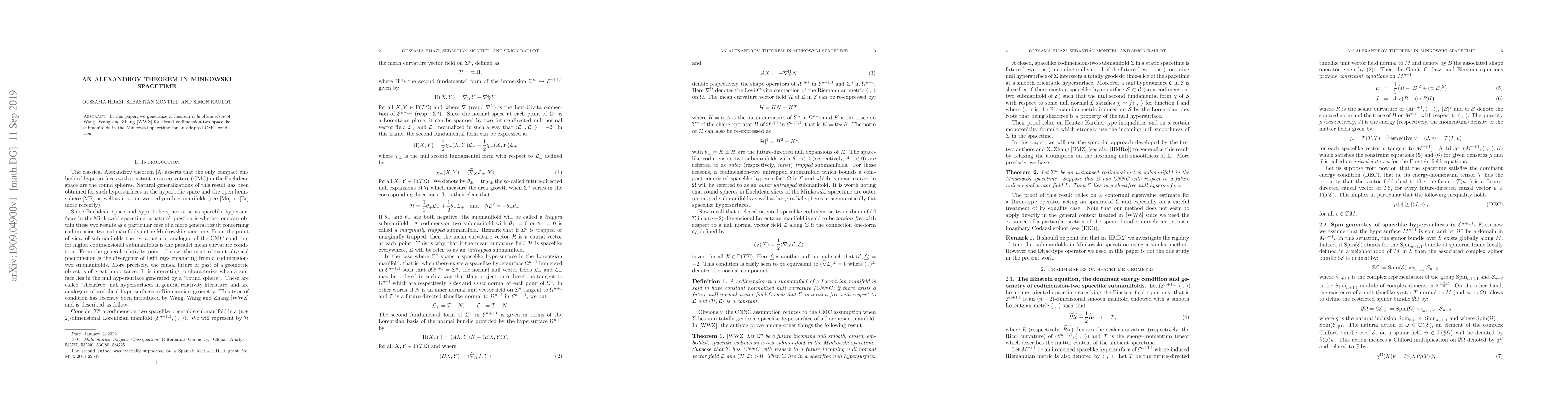 In this paper, we generalize a theorem {\`a} la Alexandrov of Wang, Wang and Zhang [WWZ] for closed codimension-two spacelike submanifolds in the Minkowski spacetime for an adapted CMC condition .