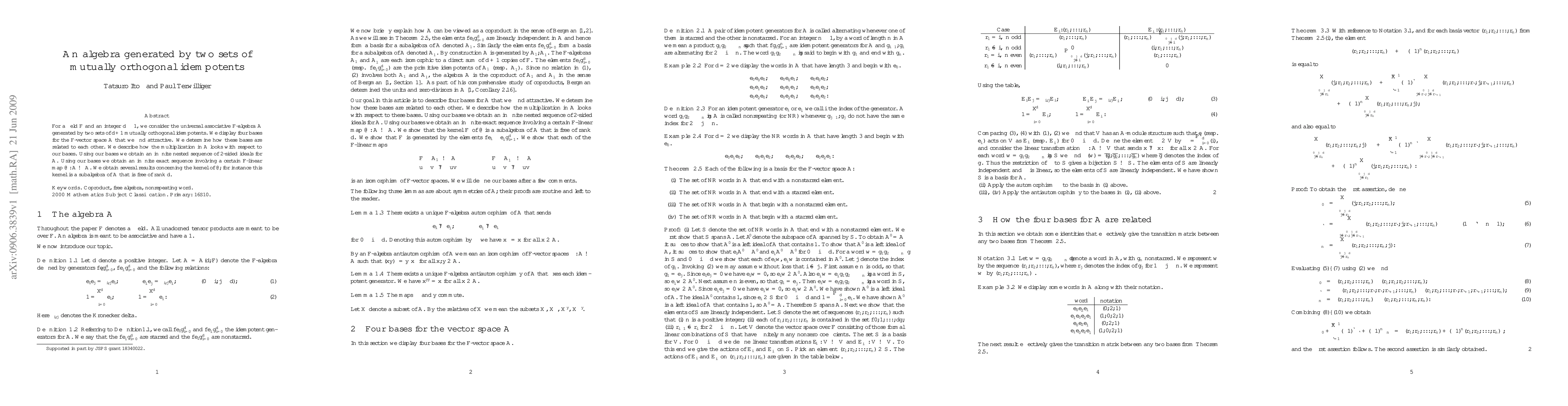 This paper explores the universal associative algebra $A$ generated by two sets of mutually orthogonal idempotents over a field $F$. It presents four attractive bases for $A$ and elucidates their interrelations, the algebra's multiplication structure, and an infinite nested sequence of ideals. Additionally, it investigates an exact sequence involving a linear map $\partial$ and finds that its kernel is a free subalgebra of rank $d$.
