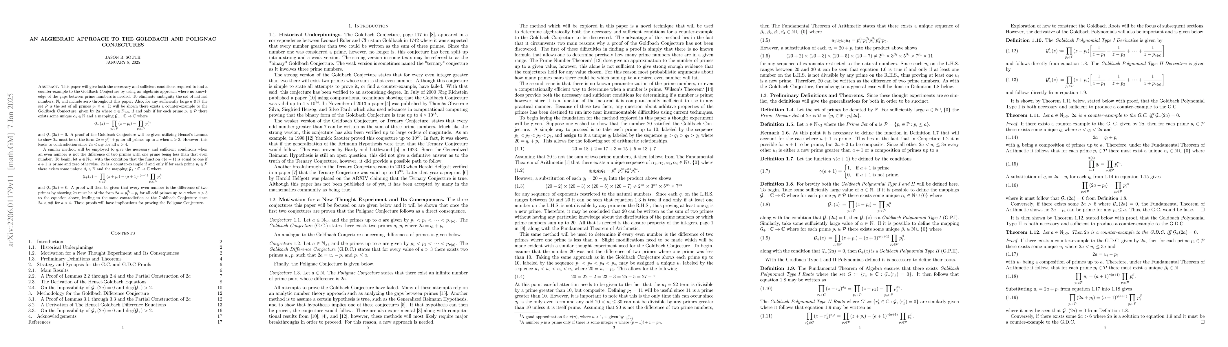 This paper presents an algebraic approach to the Goldbach Conjecture, proving the existence of a counterexample via specific conditions involving primes and their products, and also explores implications for the Polignac Conjecture.