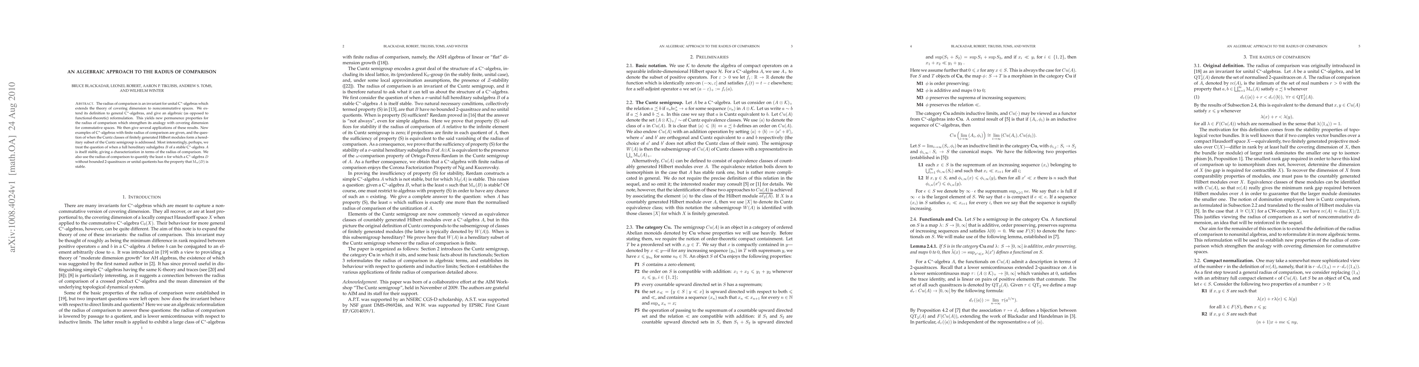 The paper introduces a new algebraic approach to the radius of comparison for general C*-algebras, providing permanence properties similar to covering dimension for commutative spaces.