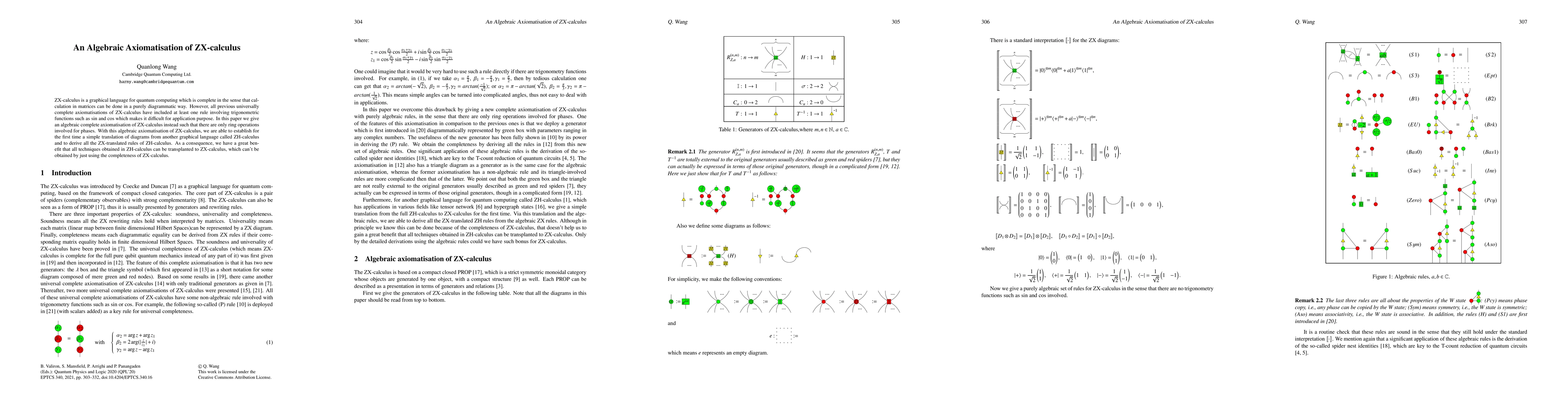 ZX-calculus is a graphical language for quantum computing which is complete in the sense that calculation in matrices can be done in a purely diagrammatic way. However, all previous universally complete axiomatisations of ZX-calculus have included at least one rule involving trigonometric functions such as sin and cos which makes it difficult for application purpose. In this paper we give an algebraic complete axiomatisation of ZX-calculus instead such that there are only ring operations involved for phases. With this algebraic axiomatisation of ZX-calculus, we are able to establish for the first time a simple translation of diagrams from another graphical language called ZH-calculus and to derive all the ZX-translated rules of ZH-calculus. As a consequence, we have a great benefit that all techniques obtained in ZH-calculus can be transplanted to ZX-calculus, which can't be obtained by just using the completeness of ZX-calculus.