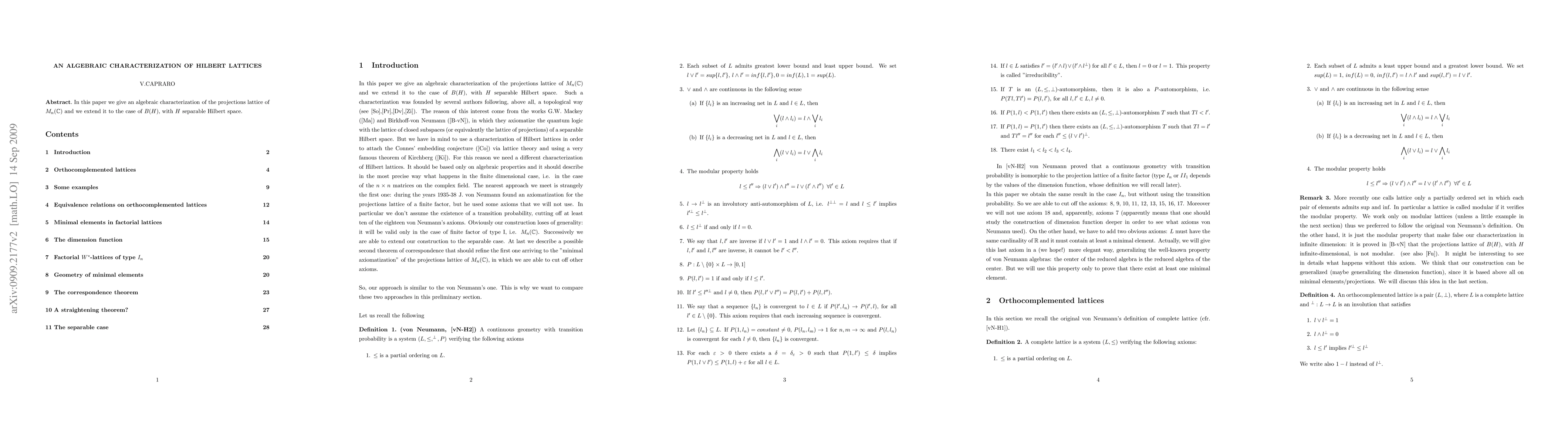 In this paper we give an algebraic characterization of the projections lattice of $M_n(\mathbb C)$ and we extend it to the case of $B(H)$, with $H$ separable Hilbert space.