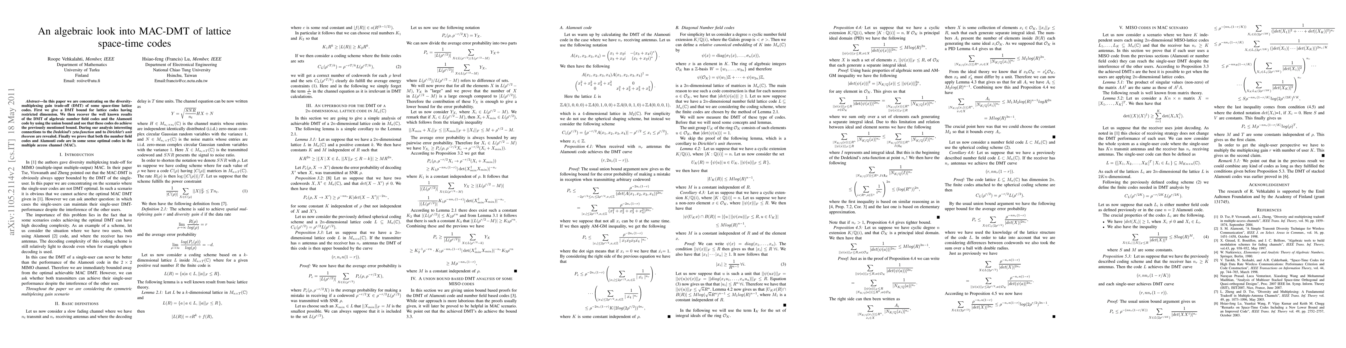 This paper investigates the diversity-multiplexing gain trade-off (DMT) for lattice space-time codes, establishing a DMT bound for codes with restricted dimensions. It demonstrates that known results for algebraic number field codes and the Alamouti code meet this bound, revealing connections to Dedekind's zeta-function and the unit group of algebraic number fields, and proving the optimality of these codes in the multiple access channel (MAC).