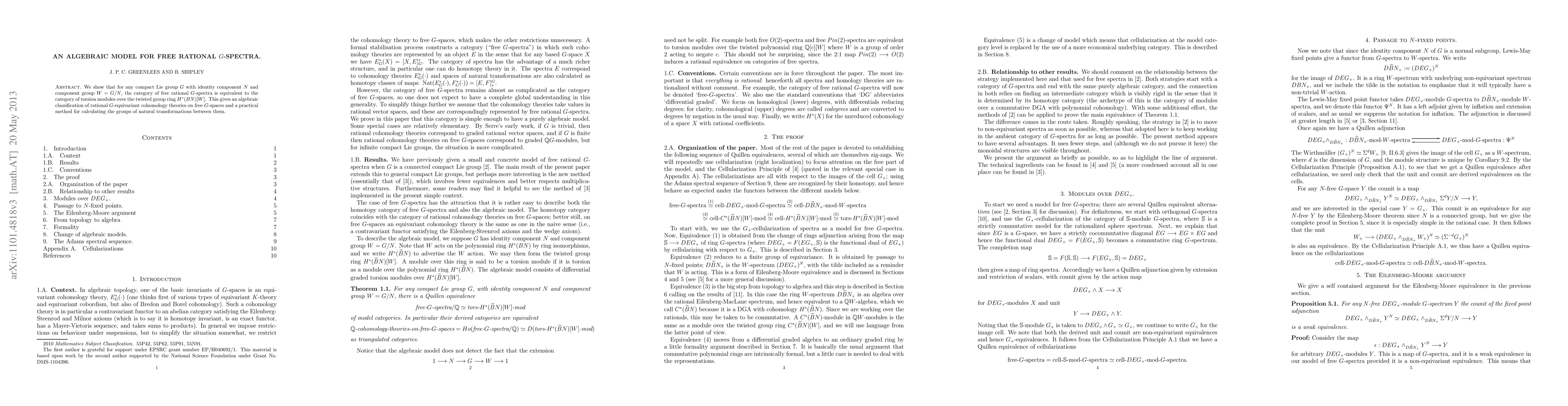 This paper establishes an algebraic equivalence between free rational $G$-spectra and torsion modules over the twisted group ring $H^*(BN)[W]$ for any compact Lie group $G$, providing a classification of rational $G$-equivariant cohomology theories and a method to compute transformations between them. This builds on prior methods from arXiv:1101.2511.