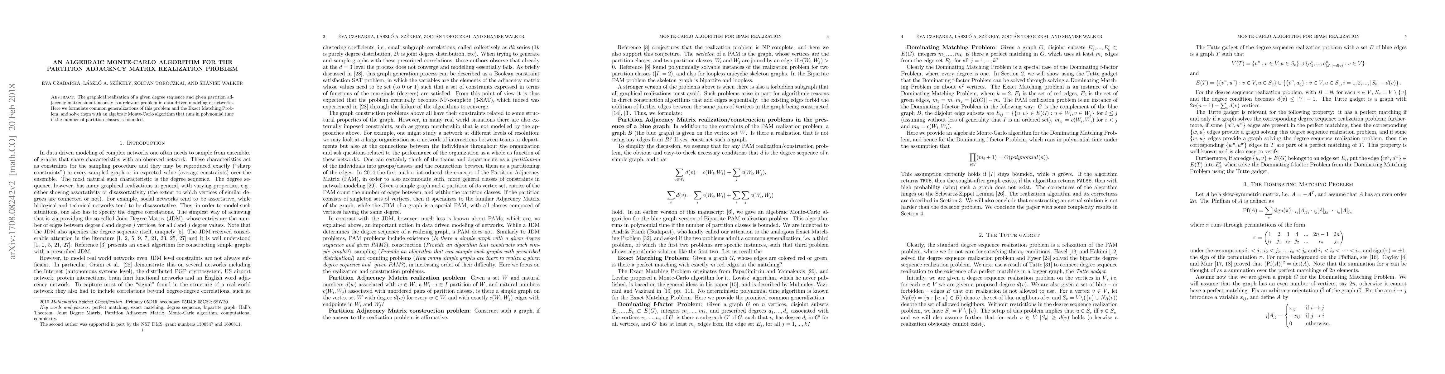 This research introduces an algebraic Monte-Carlo algorithm that efficiently solves the problem of simultaneously realizing a given degree sequence and partition adjacency matrix in polynomial time, when the number of partition classes is bounded. It also establishes connections between this problem and the Exact Matching Problem.