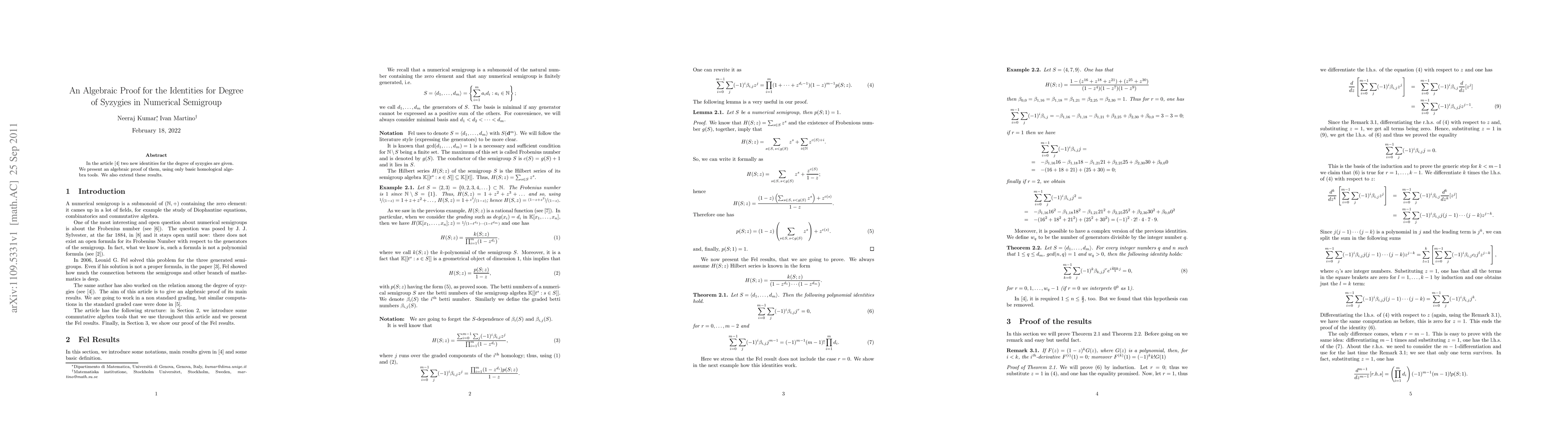 In a recent paper by L. Fel two new identities for the degree of syzygies are given. We present an algebraic proof of them, using only basic homological algebra tools. We also extend these results.