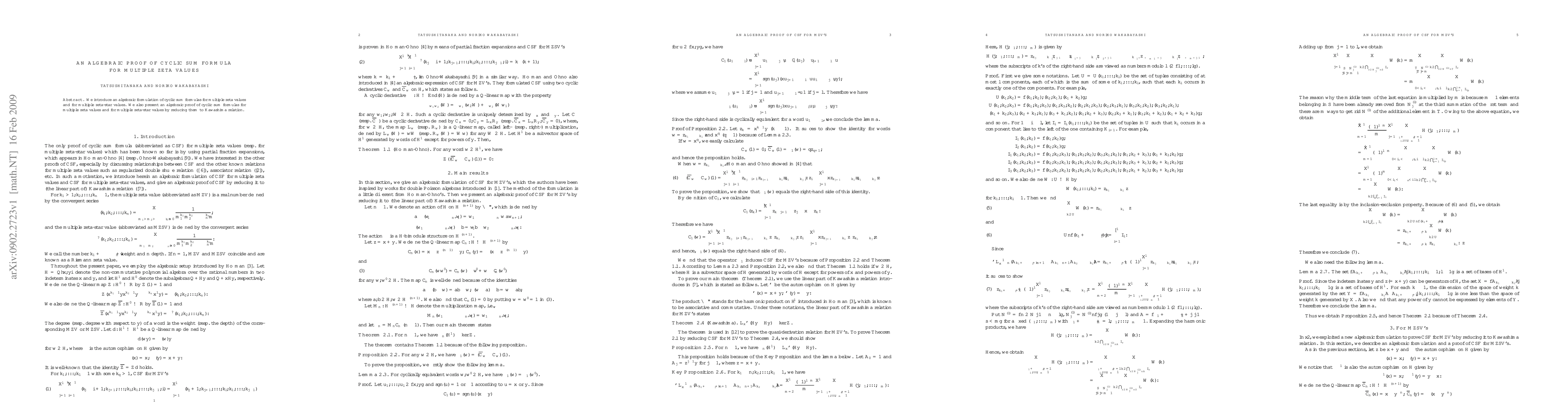 This paper presents an algebraic formulation and proof of cyclic sum formulas for multiple zeta values and multiple zeta-star values, utilizing the Kawashima relation for the proof.