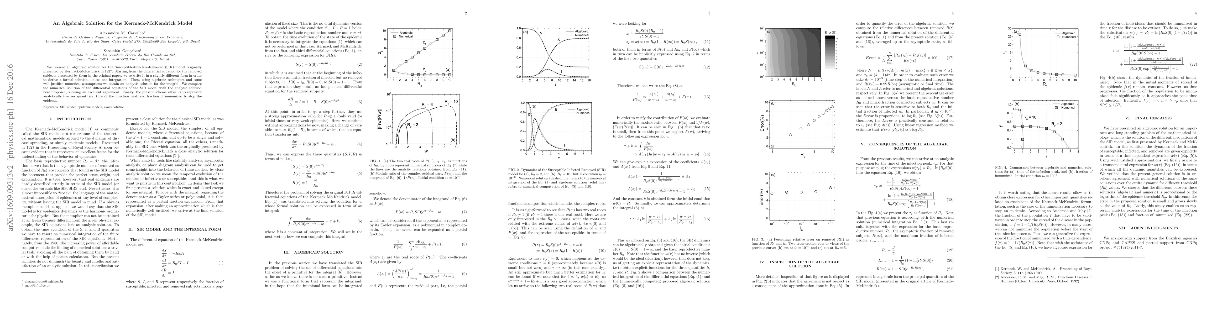 Researchers provide an algebraic solution to the Kermack-McKendrick SIR model, solving it with one integration and demonstrating excellent agreement between numerical and analytical solutions.