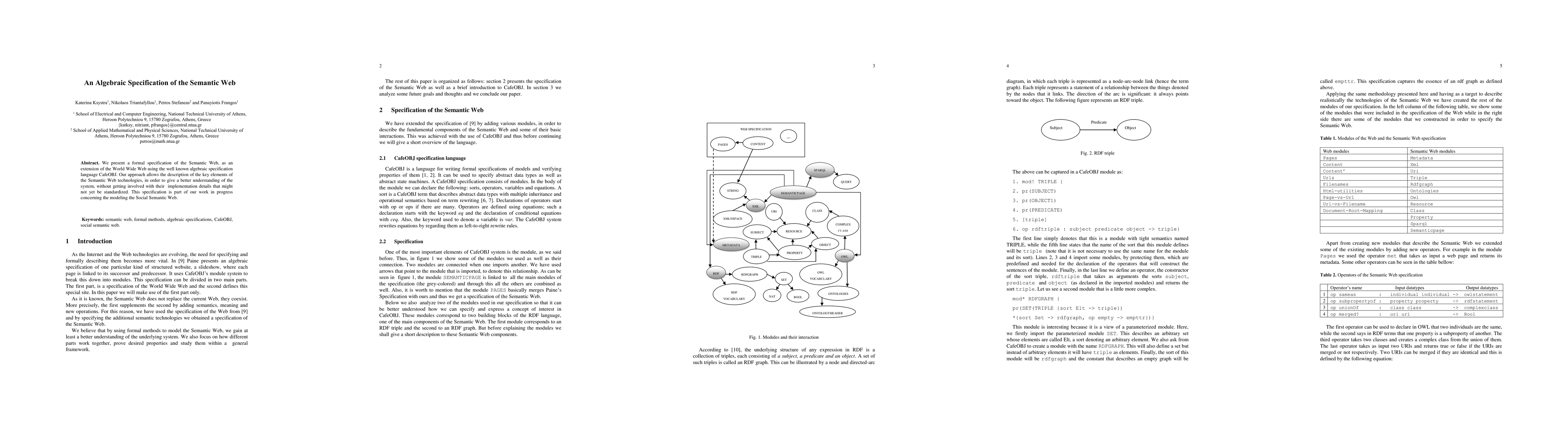 This paper formally specifies the Semantic Web using the algebraic language CafeOBJ, aiming to clarify its key elements without delving into unstandardized implementation details. This work contributes to ongoing efforts in modeling the Social Semantic Web.