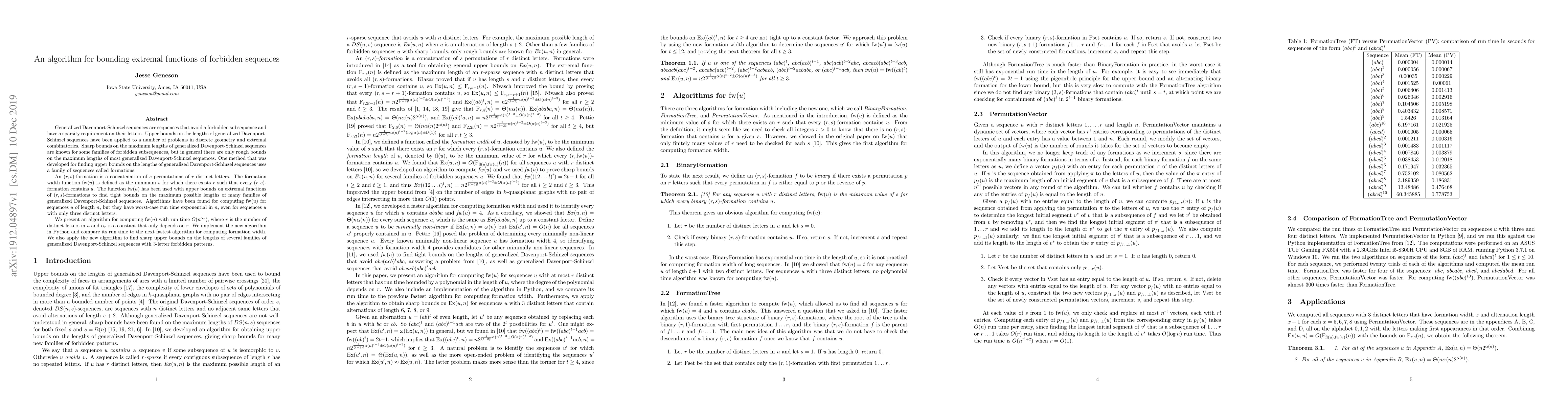 Generalized Davenport-Schinzel sequences are sequences that avoid a forbidden subsequence and have a sparsity requirement on their letters. Upper bounds on the lengths of generalized Davenport-Schinzel sequences have been applied to a number of problems in discrete geometry and extremal combinatorics. Sharp bounds on the maximum lengths of generalized Davenport-Schinzel sequences are known for some families of forbidden subsequences, but in general there are only rough bounds on the maximum lengths of most generalized Davenport-Schinzel sequences. One method that was developed for finding upper bounds on the lengths of generalized Davenport-Schinzel sequences uses a family of sequences called formations. An $(r, s)$-formation is a concatenation of $s$ permutations of $r$ distinct letters. The formation width function $fw(u)$ is defined as the minimum $s$ for which there exists $r$ such that every $(r, s)$-formation contains $u$. The function $fw(u)$ has been used with upper bounds on extremal functions of $(r, s)$-formations to find tight bounds on the maximum possible lengths of many families of generalized Davenport-Schinzel sequences. Algorithms have been found for computing $fw(u)$ for sequences $u$ of length $n$, but they have worst-case run time exponential in $n$, even for sequences $u$ with only three distinct letters. We present an algorithm for computing $fw(u)$ with run time $O(n^{\alpha_r})$, where $r$ is the number of distinct letters in $u$ and $\alpha_r$ is a constant that only depends on $r$. We implement the new algorithm in Python and compare its run time to the next fastest algorithm for computing formation width. We also apply the new algorithm to find sharp upper bounds on the lengths of several families of generalized Davenport-Schinzel sequences with $3$-letter forbidden patterns.