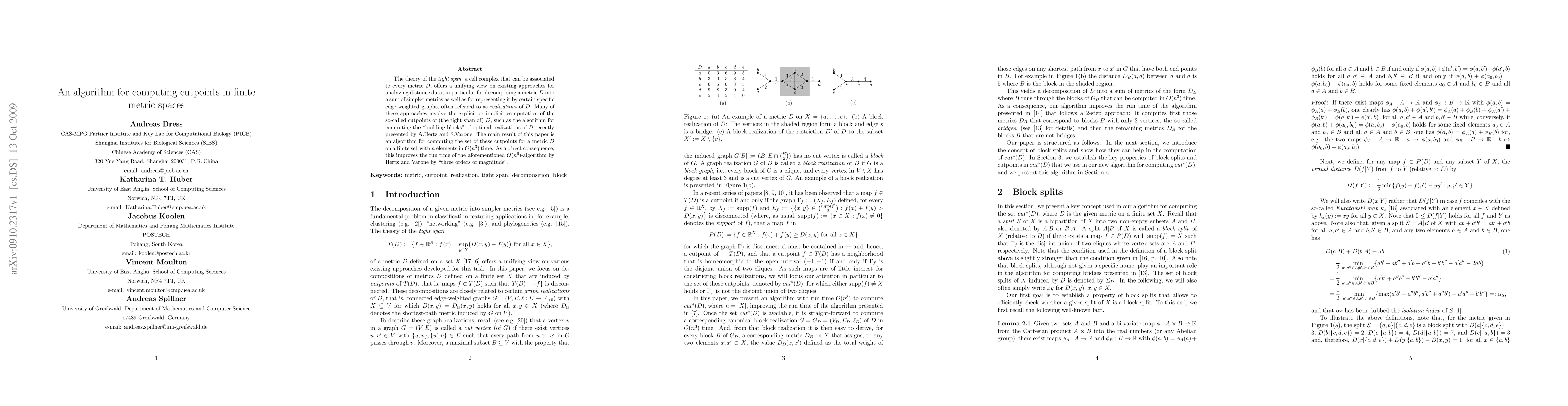 The theory of the tight span, a cell complex that can be associated to every metric $D$, offers a unifying view on existing approaches for analyzing distance data, in particular for decomposing a metric $D$ into a sum of simpler metrics as well as for representing it by certain specific edge-weighted graphs, often referred to as realizations of $D$. Many of these approaches involve the explicit or implicit computation of the so-called cutpoints of (the tight span of) $D$, such as the algorithm for computing the "building blocks" of optimal realizations of $D$ recently presented by A. Hertz and S. Varone. The main result of this paper is an algorithm for computing the set of these cutpoints for a metric $D$ on a finite set with $n$ elements in $O(n^3)$ time. As a direct consequence, this improves the run time of the aforementioned $O(n^6)$-algorithm by Hertz and Varone by ``three orders of magnitude''.
