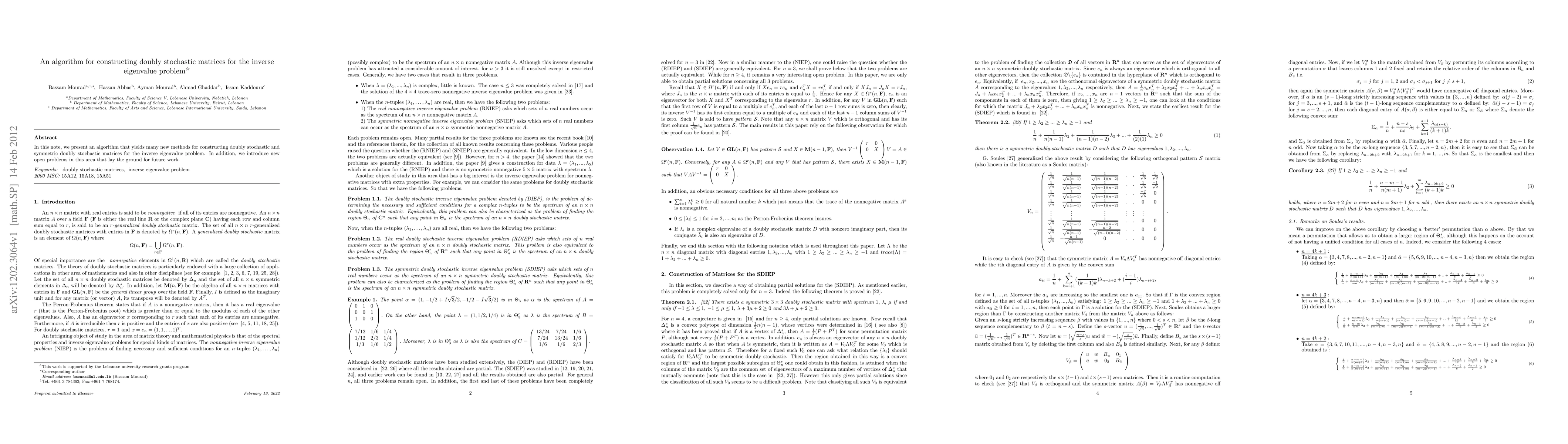 Summary: This paper introduces an algorithm for generating doubly stochastic and symmetric doubly stochastic matrices to address the inverse eigenvalue problem, and proposes new open problems to guide future research in this field.