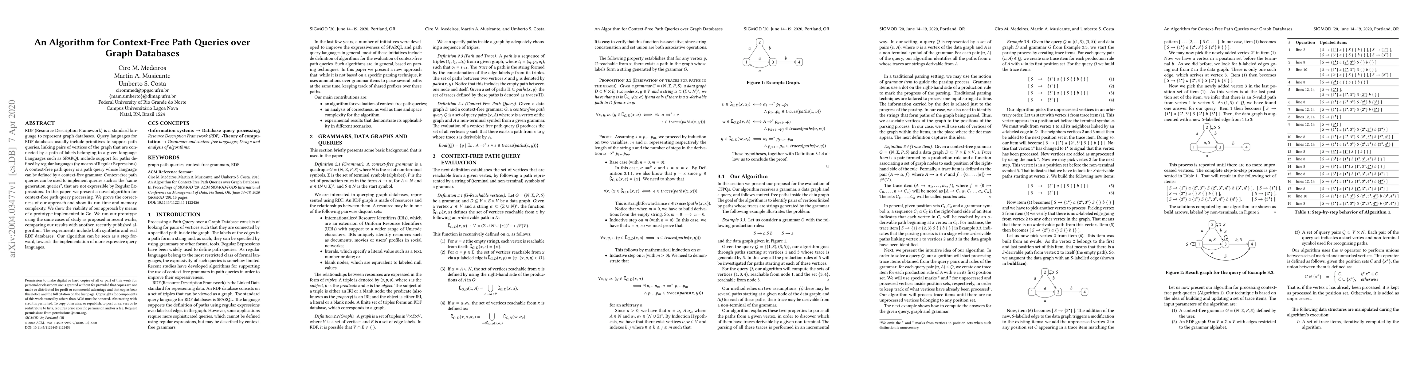 RDF (Resource Description Framework) is a standard language to represent graph databases. Query languages for RDF databases usually include primitives to support path queries, linking pairs of vertices of the graph that are connected by a path of labels belonging to a given language. Languages such as SPARQL include support for paths defined by regular languages (by means of Regular Expressions). A context-free path query is a path query whose language can be defined by a context-free grammar. Context-free path queries can be used to implement queries such as the "same generation queries", that are not expressible by Regular Expressions. In this paper, we present a novel algorithm for context-free path query processing. We prove the correctness of our approach and show its run-time and memory complexity. We show the viability of our approach by means of a prototype implemented in Go. We run our prototype using the same cases of study as proposed in recent works, comparing our results with another, recently published algorithm. The experiments include both synthetic and real RDF databases. Our algorithm can be seen as a step forward, towards the implementation of more expressive query languages.