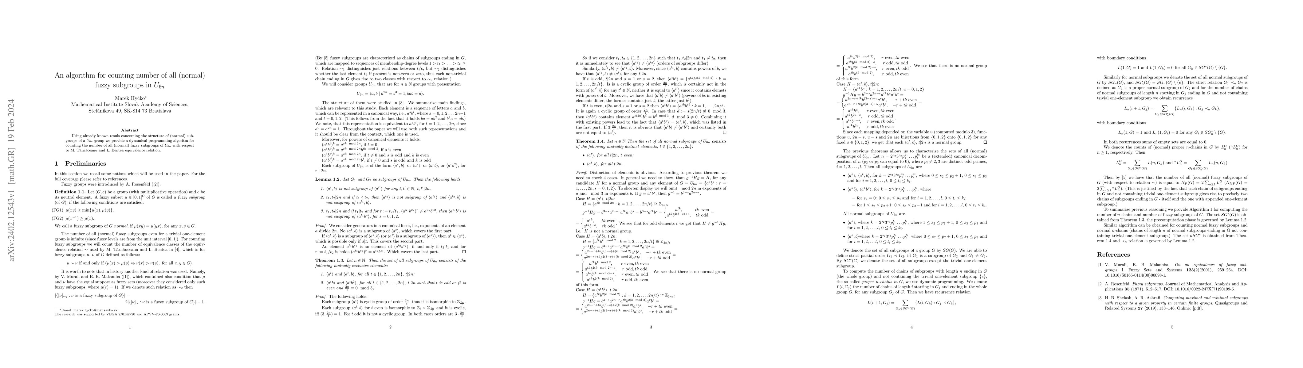 This paper presents a dynamic programming algorithm to count all (normal) fuzzy subgroups in the $U_{6n}$ group, utilizing existing structural results and the T\u{a}rn\u{a}ceanu and Bentea equivalence relation. The algorithm efficiently determines the number of such subgroups within this specific group.