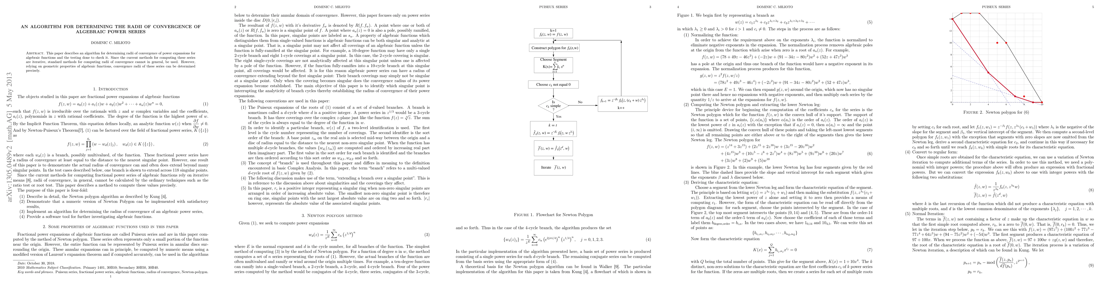 This paper presents an algorithm based on geometric properties to accurately determine the radii of convergence for power expansions of algebraic functions, where traditional iterative methods are insufficient. The algorithm's effectiveness is validated through testing.