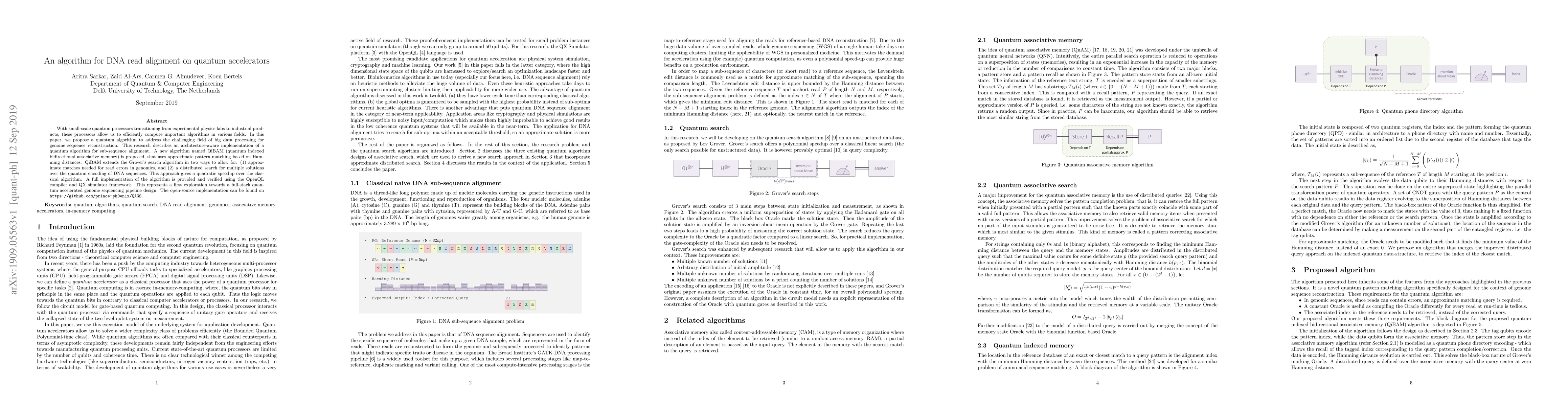 This paper proposes a quantum algorithm named QiBAM for efficient DNA read alignment on quantum processors, leveraging approximate pattern-matching and distributed search to achieve a quadratic speedup over classical methods. The algorithm is implemented and verified using the OpenQL compiler and QX simulator framework.