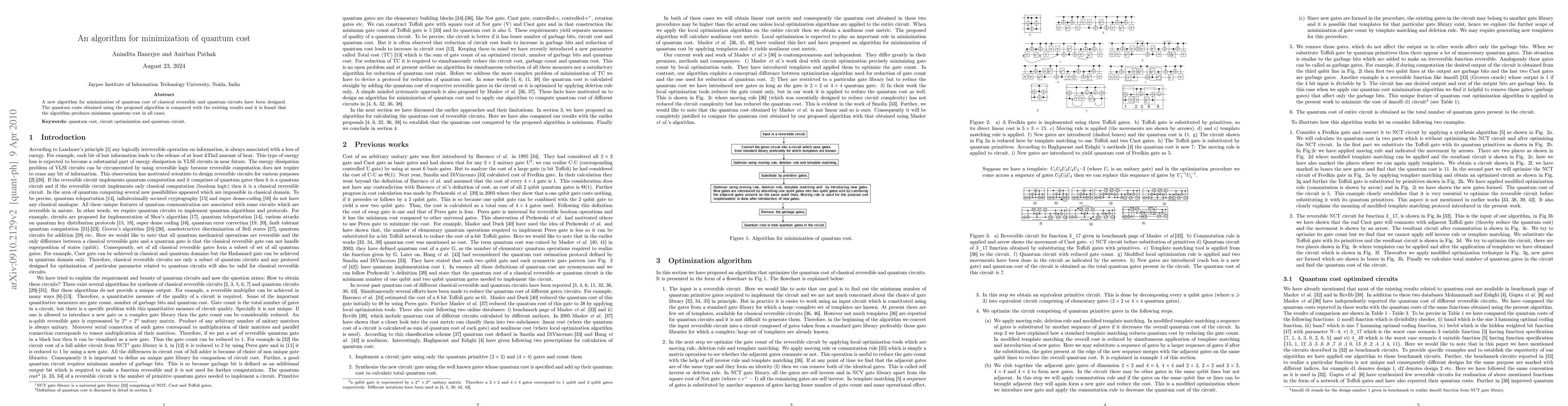 A new algorithm for minimizing quantum cost in quantum circuits has been developed, producing lower costs than existing methods for various operations, including EPR, teleportation, Shor code, and arithmetic.