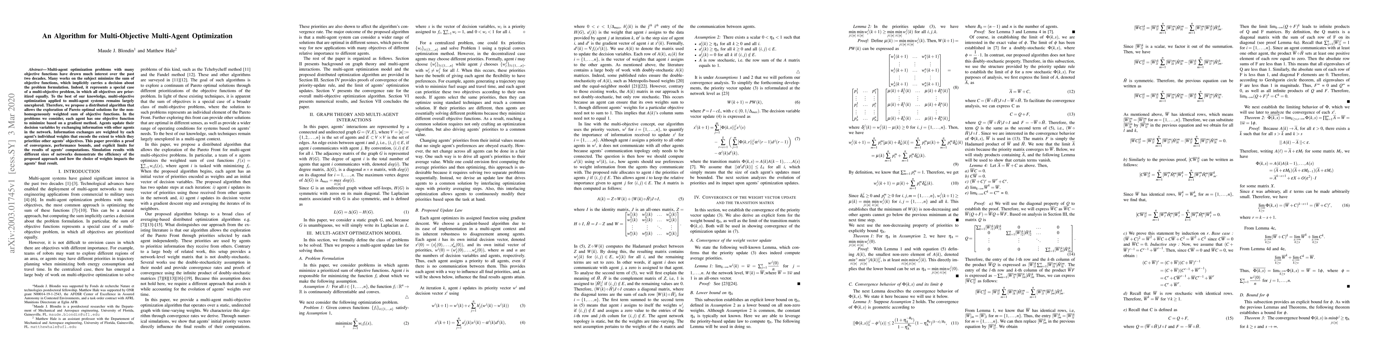 A distributed optimization algorithm was developed to optimize a prioritized sum of convex objective functions.