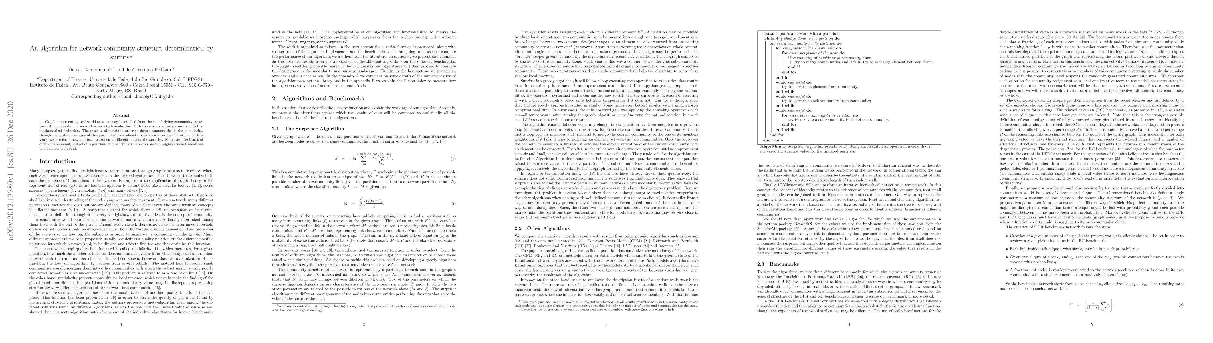This paper introduces a novel algorithm for determining network community structure using the metric of "surprise," aiming to overcome the limitations of traditional modularity-based methods. It also critically examines biases in existing community detection algorithms and benchmark networks.