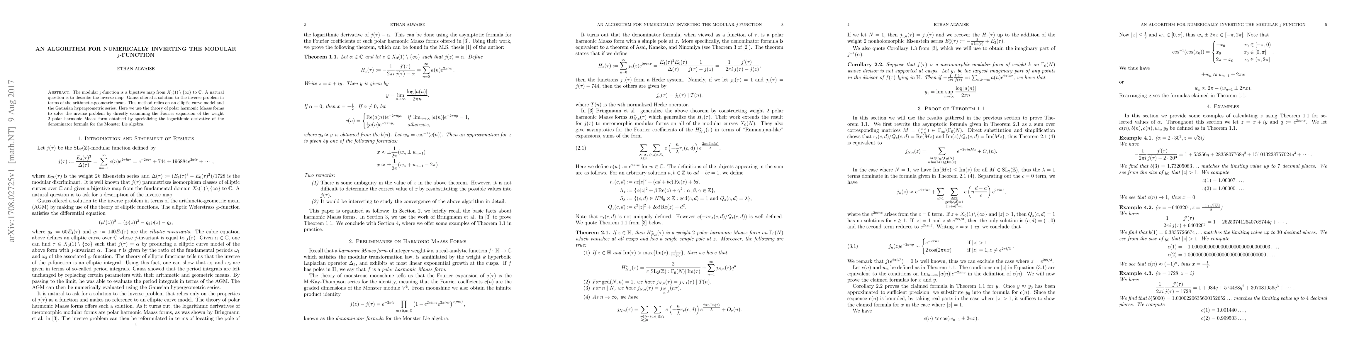 The modular $j$-function is a bijective map from $X_0(1) \setminus \{\infty\}$ to $\mathbb{C}$. A natural question is to describe the inverse map. Gauss offered a solution to the inverse problem in terms of the arithmetic-geometric mean. This method relies on an elliptic curve model and the Gaussian hypergeometric series. Here we use the theory of polar harmonic Maass forms to solve the inverse problem by directly examining the Fourier expansion of the weight $2$ polar harmonic Maass form obtained by specializing the logarithmic derivative of the denominator formula for the Monster Lie algebra.