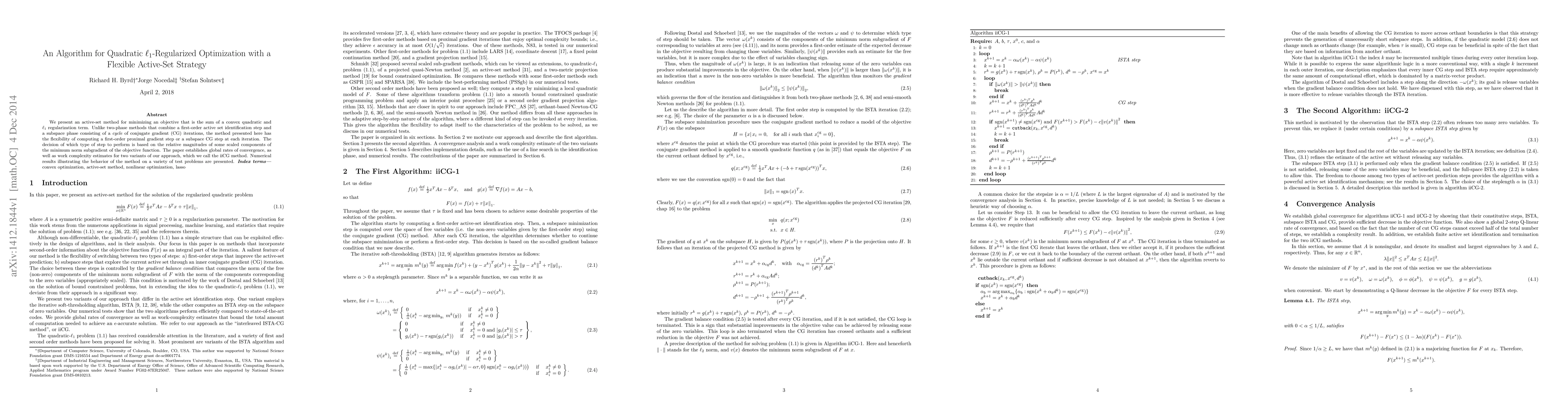 This research paper introduces an active-set method for minimizing quadratic $ extell_1$-regularized optimization problems with flexibility in choosing between first-order proximal gradient steps or subspace conjugate gradient iterations based on the objective function's subgradient.