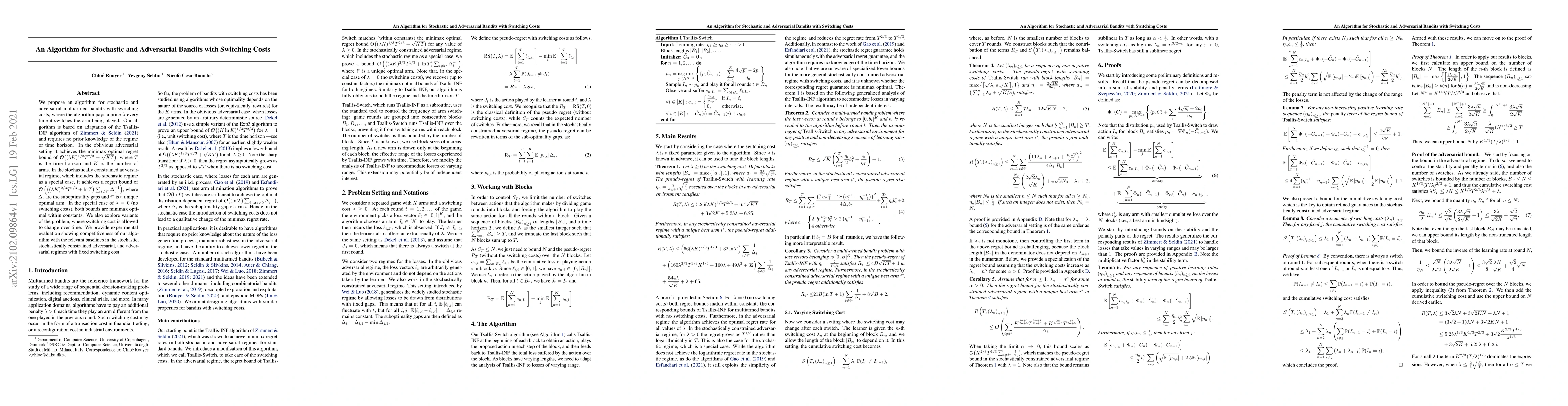 This paper proposes an algorithm for multiarmed bandits with switching costs, adapting the Tsallis-INF algorithm to handle both stochastic and adversarial settings. The algorithm achieves minimax optimal regret bounds in various regimes, including stochastic, adversarial, and stochastically constrained adversarial settings, and demonstrates competitiveness through experimental evaluation.