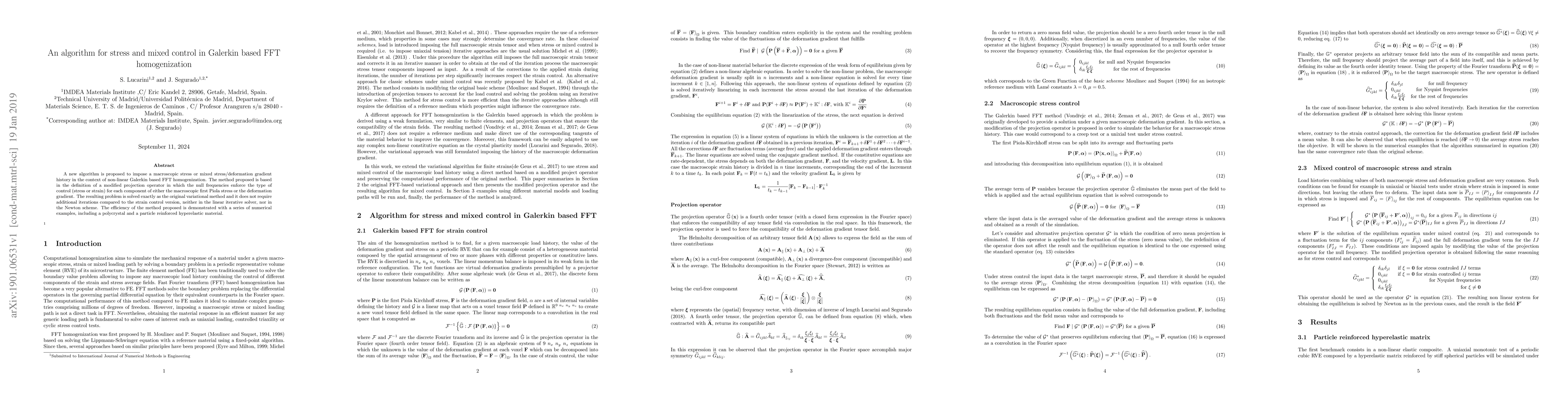 This paper proposes a new algorithm for enforcing macroscopic stress or mixed stress/deformation control in non-linear Galerkin-based FFT homogenization. It introduces a modified projection operator that enforces the desired control without requiring additional iterations, demonstrated through numerical examples involving polycrystal and particle reinforced hyperelastic materials.