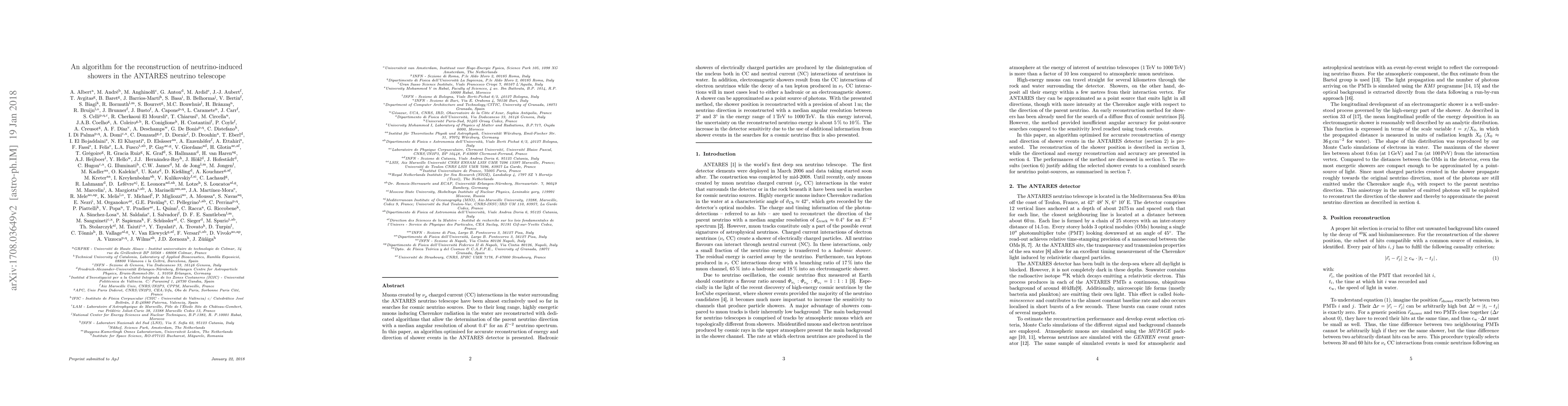 This paper introduces an optimized algorithm for reconstructing neutrino-induced showers in the ANTARES neutrino telescope, improving the precision of shower position and neutrino direction reconstruction. The method enhances detector sensitivity for cosmic neutrino flux searches.