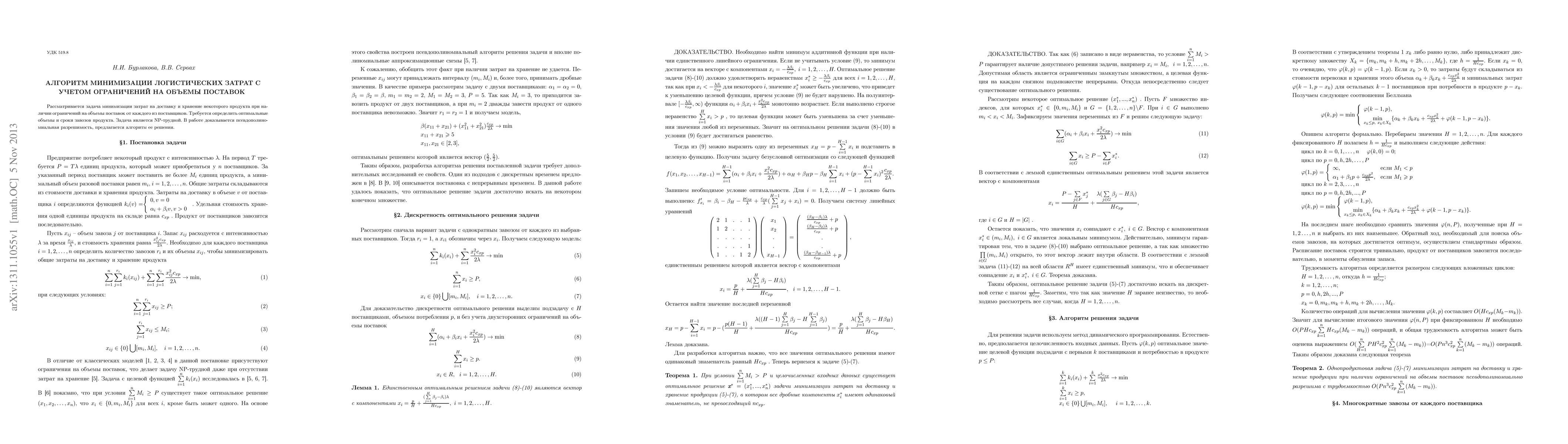 This paper presents a solution for minimizing logistic costs with supplier volume constraints, proving the problem is pseudo-polynomially solvable and proposing an algorithm for its resolution.