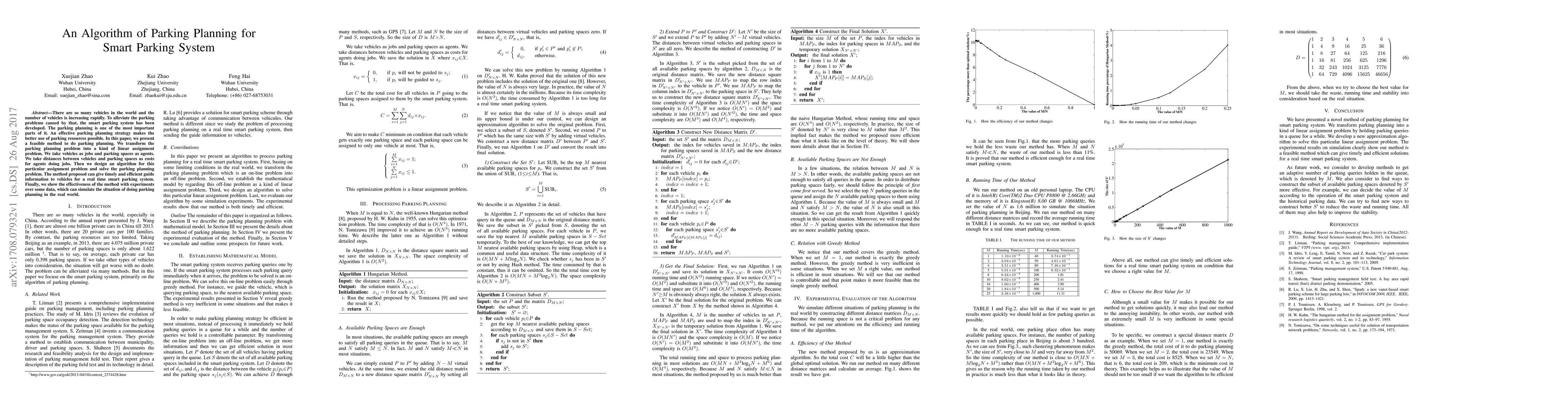This paper proposes an algorithm for parking planning in smart parking systems, transforming it into a linear assignment problem where vehicles are jobs and parking spaces are agents. The algorithm efficiently assigns vehicles to spaces based on distance, providing real-time guidance and demonstrated effectiveness through experiments simulating real-world scenarios.