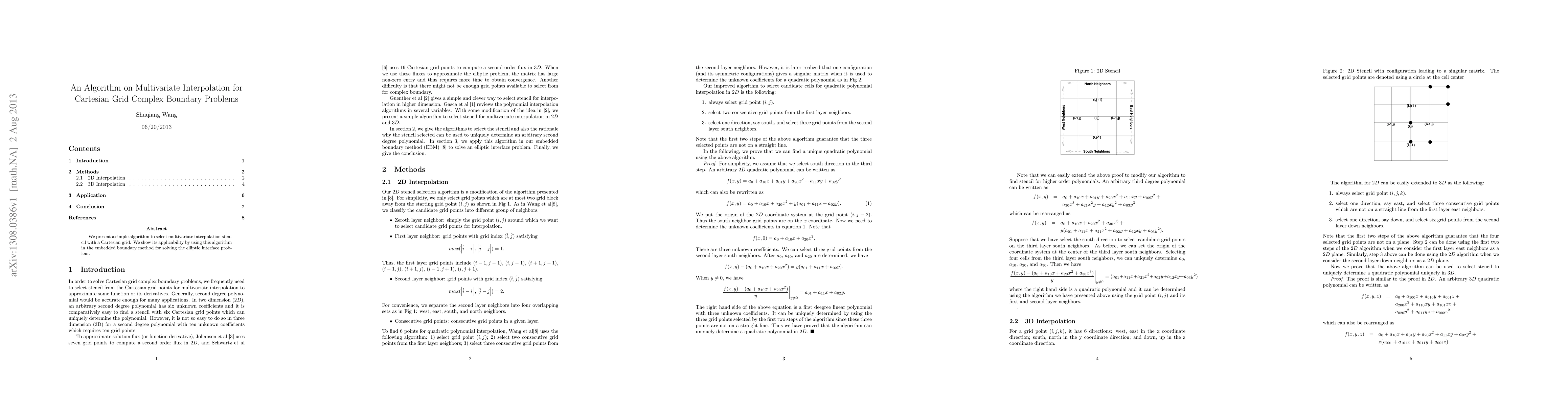 Summary: This paper introduces an algorithm for selecting multivariate interpolation stencils on Cartesian grids, demonstrating its effectiveness in solving elliptic interface problems using the embedded boundary method.