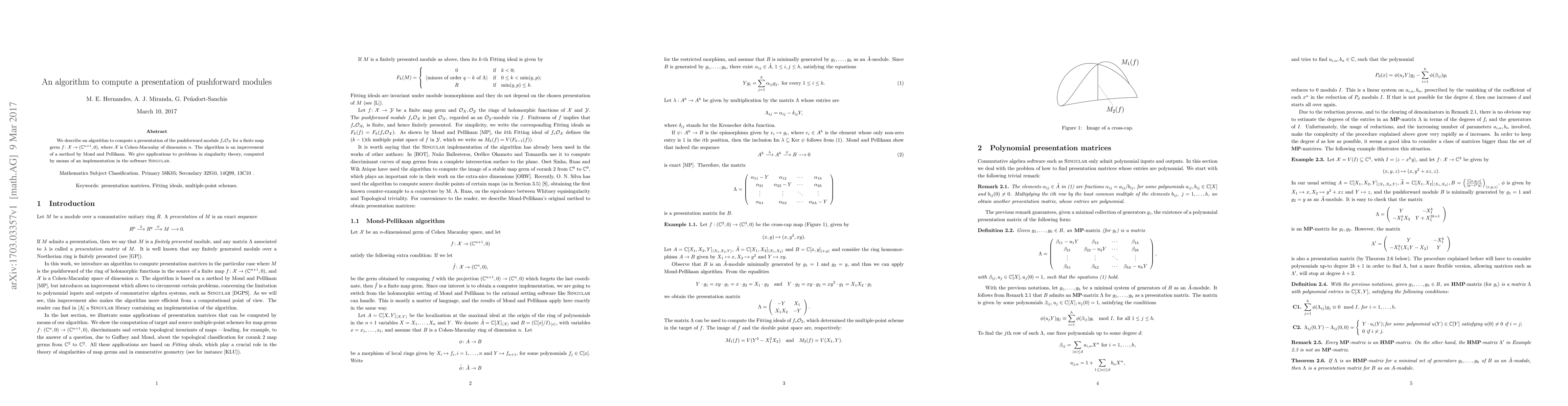 We describe an algorithm to compute a presentation of the pushforward module $f_*{\mathcal O}_{\mathcal{X}}$ for a finite map germ $f\colon \mathcal{X}\to ({\mathbb{C}}^{n+1},0)$, where $\mathcal{X}$ is Cohen-Macaulay of dimension $n$. The algorithm is an improvement of a method by Mond and Pellikaan. We give applications to problems in singularity theory, computed by means of an implementation in the software Singular.