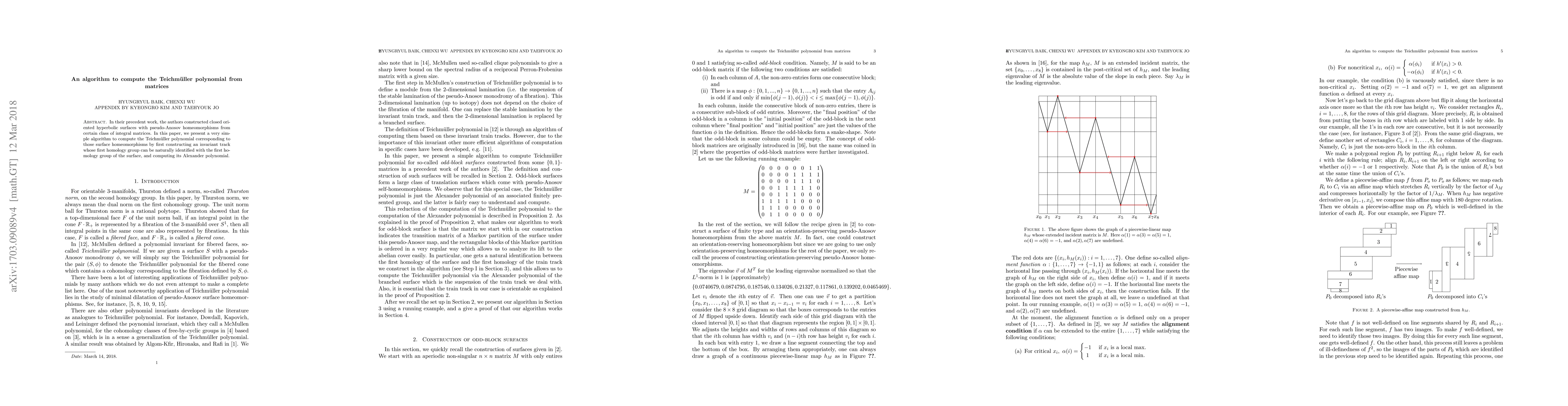 In their precedent work, the authors constructed closed oriented hyperbolic surfaces with pseudo-Anosov homeomorphisms from certain class of integral matrices. In this paper, we present a very simple algorithm to compute the Teichmueller polynomial corresponding to those surface homeomorphisms by first constructing an invariant track whose first homology group can be naturally identified with the first homology group of the surface, and computing its Alexander polynomial.