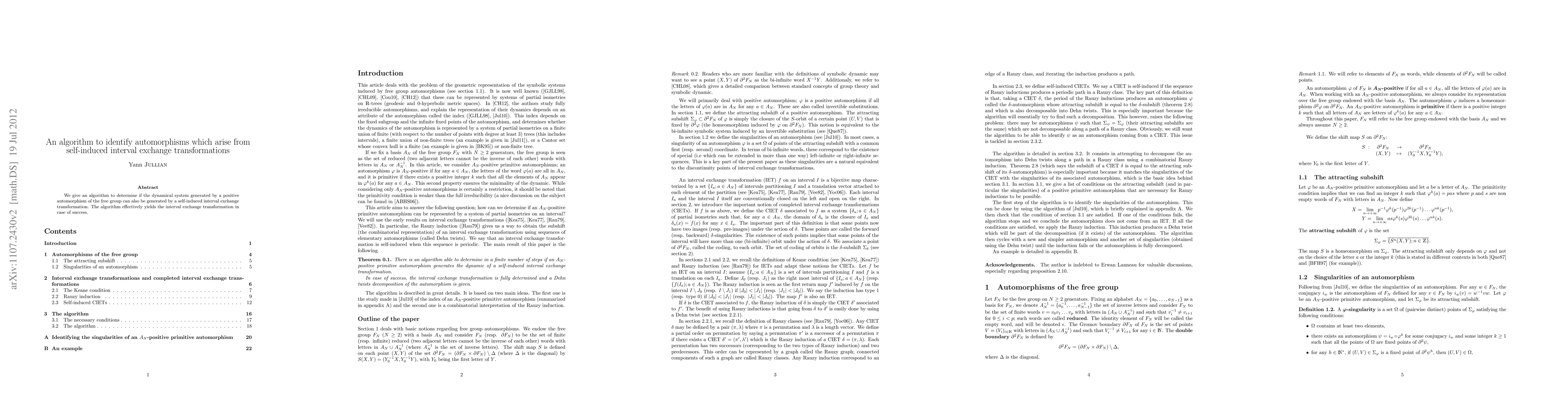 We give an algorithm to determine if the dynamical system generated by a positive automorphism of the free group can also be generated by a self-induced interval exchange transformation. The algorithm effectively yields the interval exchange transformation in case of success.
