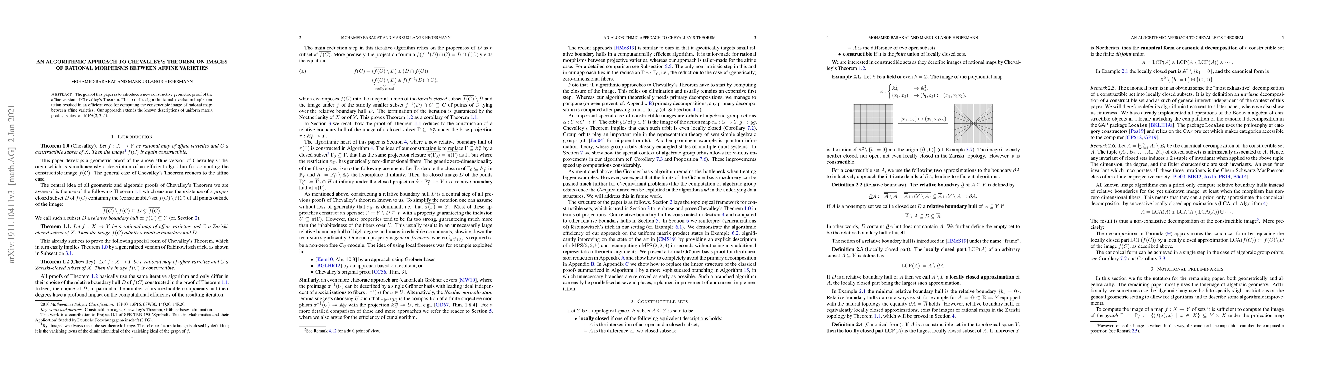 This paper presents a novel algorithmic proof for the affine version of Chevalley's Theorem, enabling efficient computation of the constructible image of rational maps between affine varieties. It also extends uniform matrix product state descriptions.