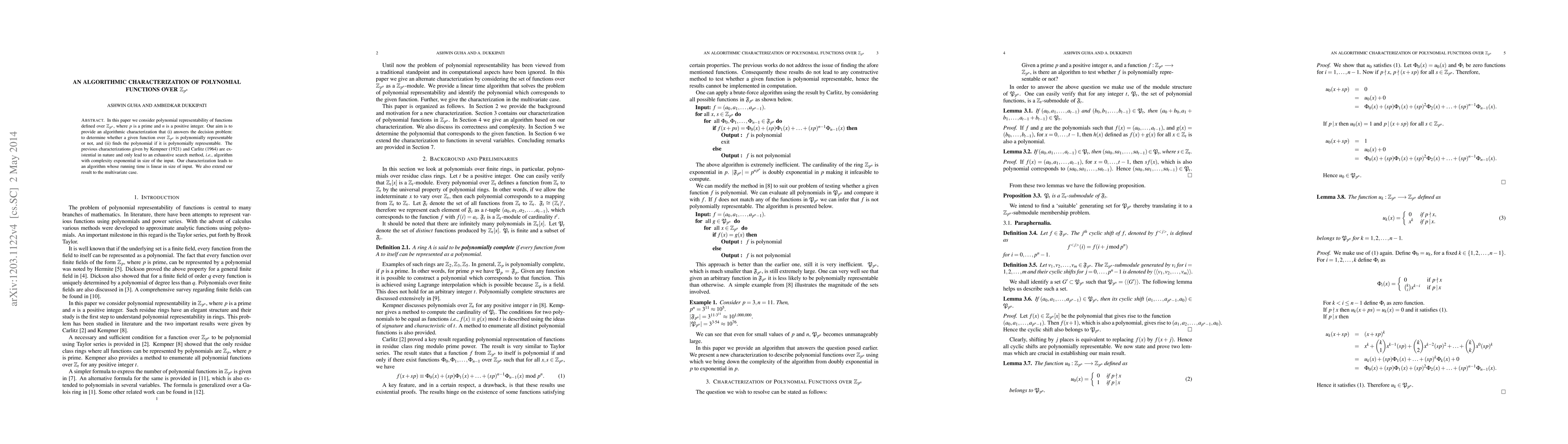 In this paper we consider polynomial representability of functions defined over $Z_{p^n}$, where $p$ is a prime and $n$ is a positive integer. Our aim is to provide an algorithmic characterization that (i) answers the decision problem: to determine whether a given function over $Z_{p^n}$ is polynomially representable or not, and (ii) finds the polynomial if it is polynomially representable. The previous characterizations given by Kempner (1921) and Carlitz (1964) are existential in nature and only lead to an exhaustive search method, i.e., algorithm with complexity exponential in size of the input. Our characterization leads to an algorithm whose running time is linear in size of input. We also extend our result to the multivariate case.
