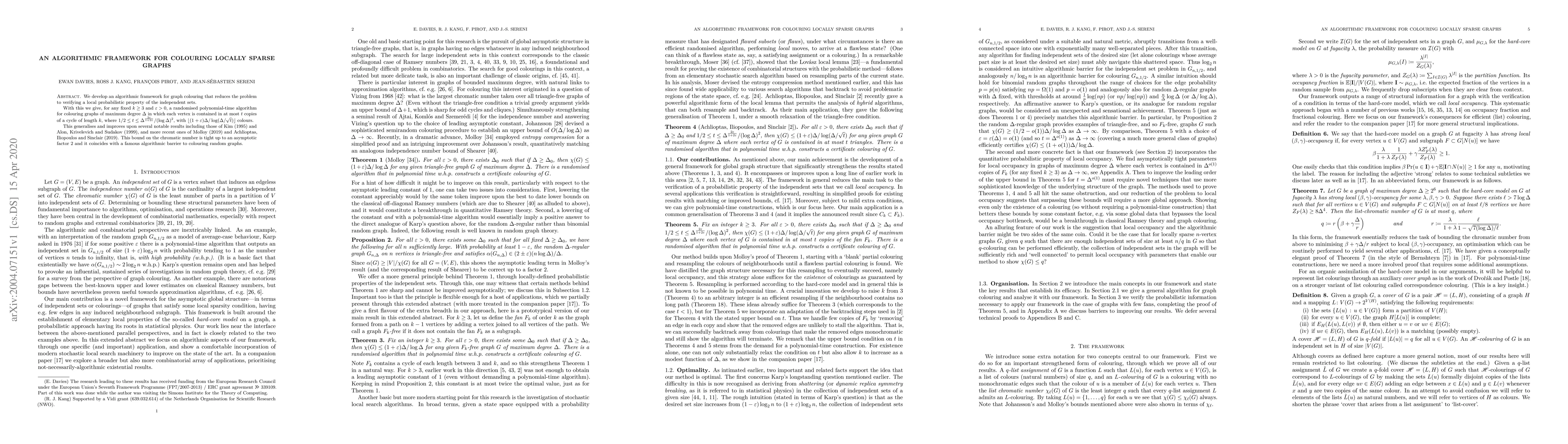 This paper presents an algorithmic framework for colouring locally sparse graphs, reducing the problem to verifying a local probabilistic property. It provides a randomised polynomial-time algorithm for colouring graphs with a specific structure, improving upon previous results and achieving a tight bound on the chromatic number.