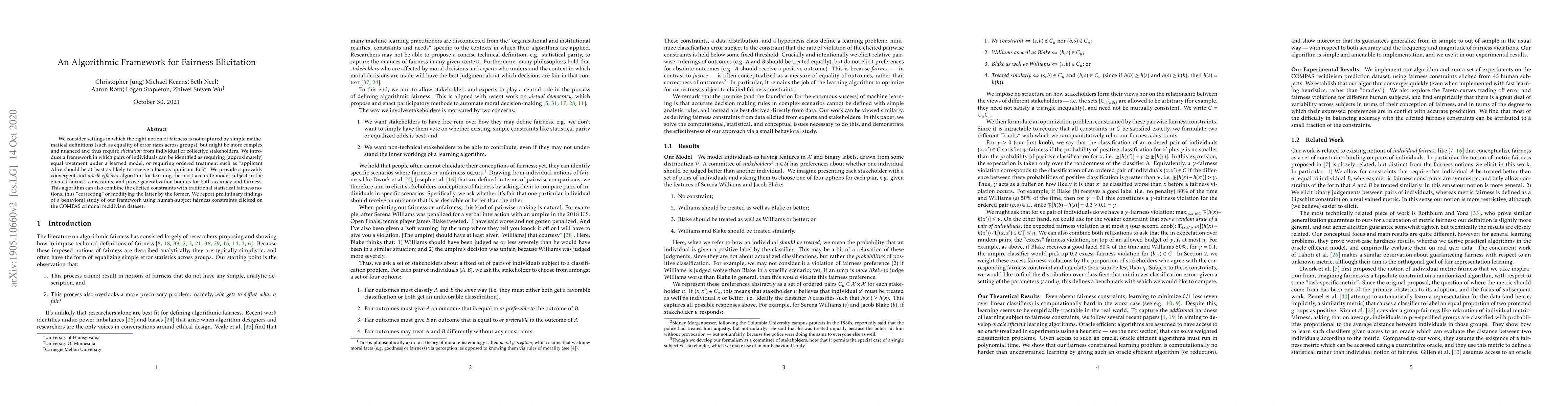 This paper introduces a framework for eliciting complex fairness constraints from stakeholders to guide the development of fair algorithms. It presents an efficient algorithm that learns accurate models while adhering to these elicited fairness constraints, combining them with traditional fairness notions.