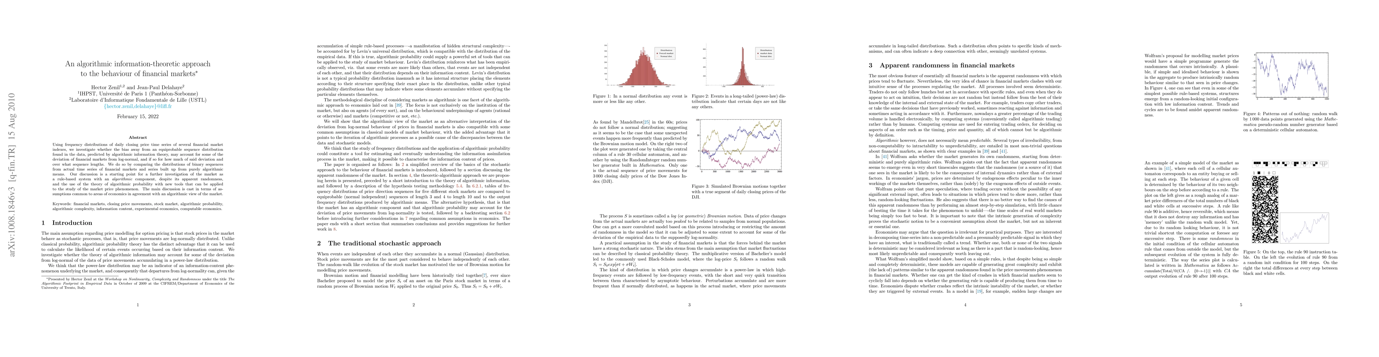 This paper uses algorithmic information theory to analyze financial market behavior, finding that actual time series deviate from equiprobable sequence distributions, suggesting a rule-based component amidst apparent randomness. The study aims to further investigate the market as a system with an 'algorithmic' component and its implications for understanding price phenomena.