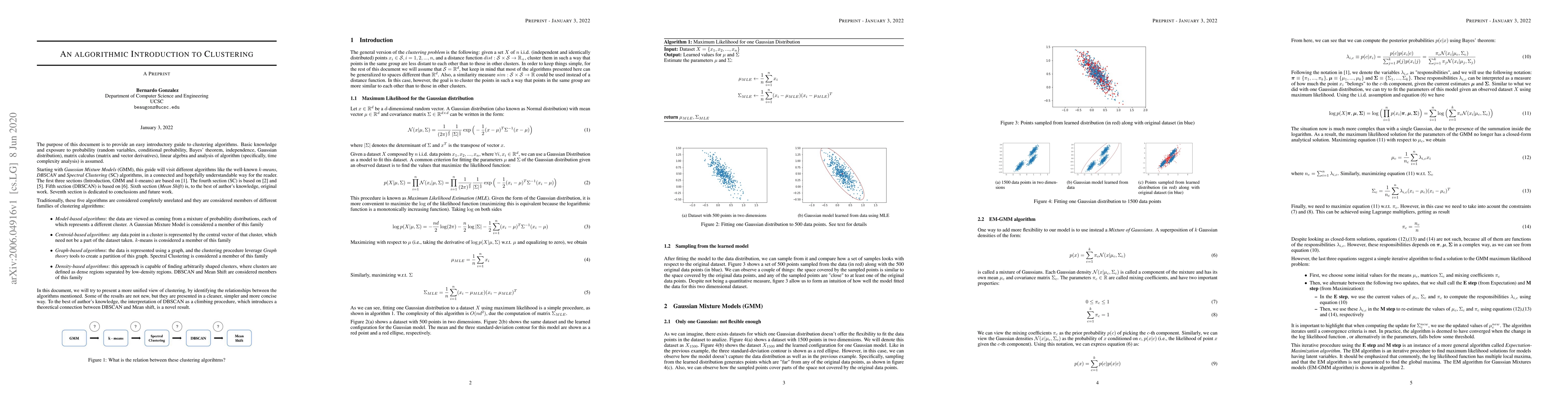 This paper tries to present a more unified view of clustering, by identifying the relationships between five different clustering algorithms. Some of the results are not new, but they are presented in a cleaner, simpler and more concise way. To the best of my knowledge, the interpretation of DBSCAN as a climbing procedure, which introduces a theoretical connection between DBSCAN and Mean shift, is a novel result.