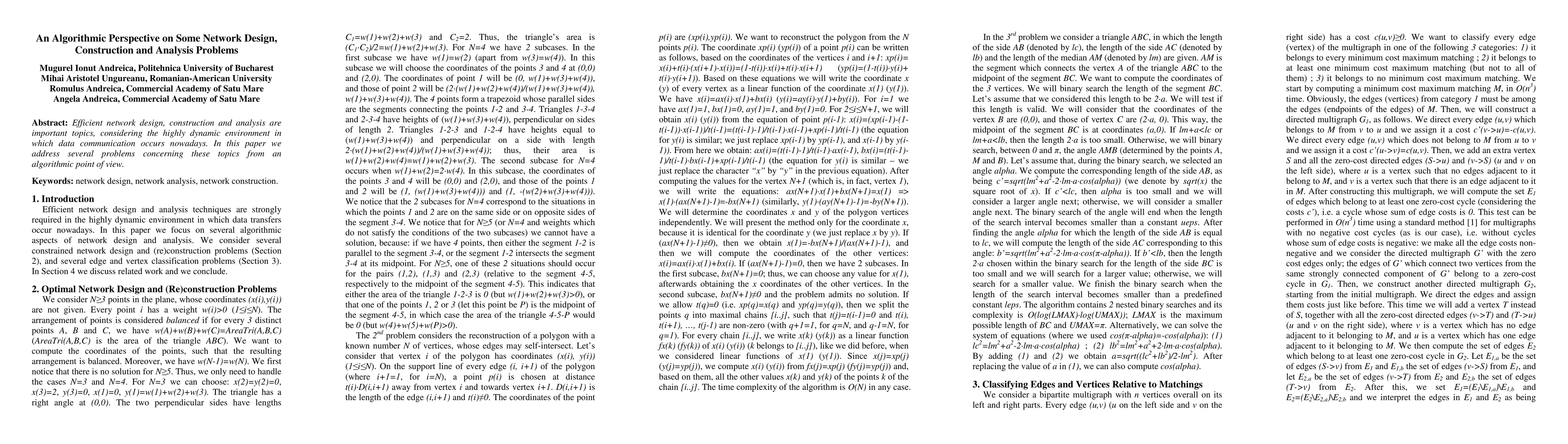 Summary: This paper explores algorithmic approaches to network design, construction, and analysis in a dynamic data communication environment, focusing on efficient problem-solving strategies. The study aims to address various challenges in these areas through innovative algorithms.