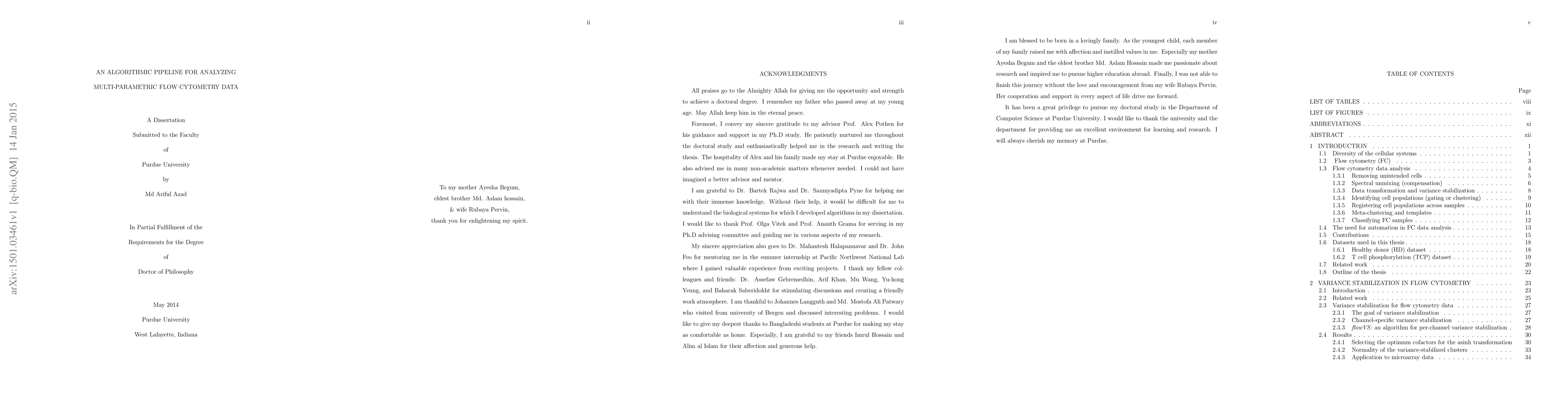 This dissertation presents flowMatch, an algorithmic pipeline for analyzing multi-parametric flow cytometry data, consisting of five modules for data transformation, clustering, registration, encapsulation, and classification. The pipeline efficiently handles high-dimensional data and has been applied to classify leukemia samples, evaluate T cell phosphorylation, and determine vaccination status in HIV patients.