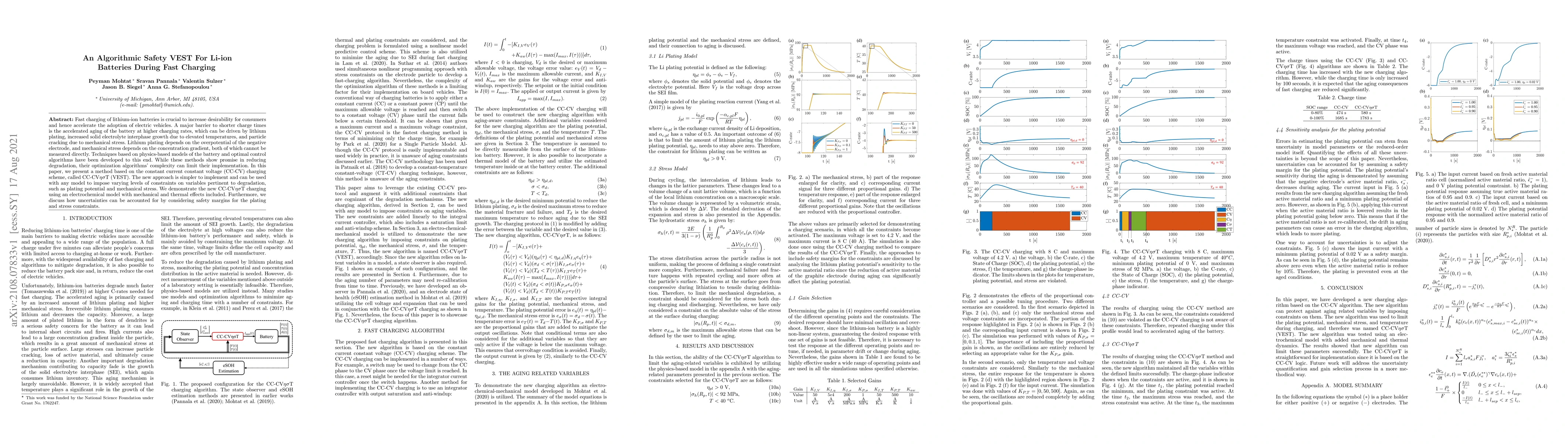 The research presents a new charging algorithm, CC-CVησT (VEST), based on the constant current constant voltage (CC-CV) charging scheme, which imposes constraints on variables related to battery degradation such as plating potential, mechanical stress, and temperature during fast charging.
