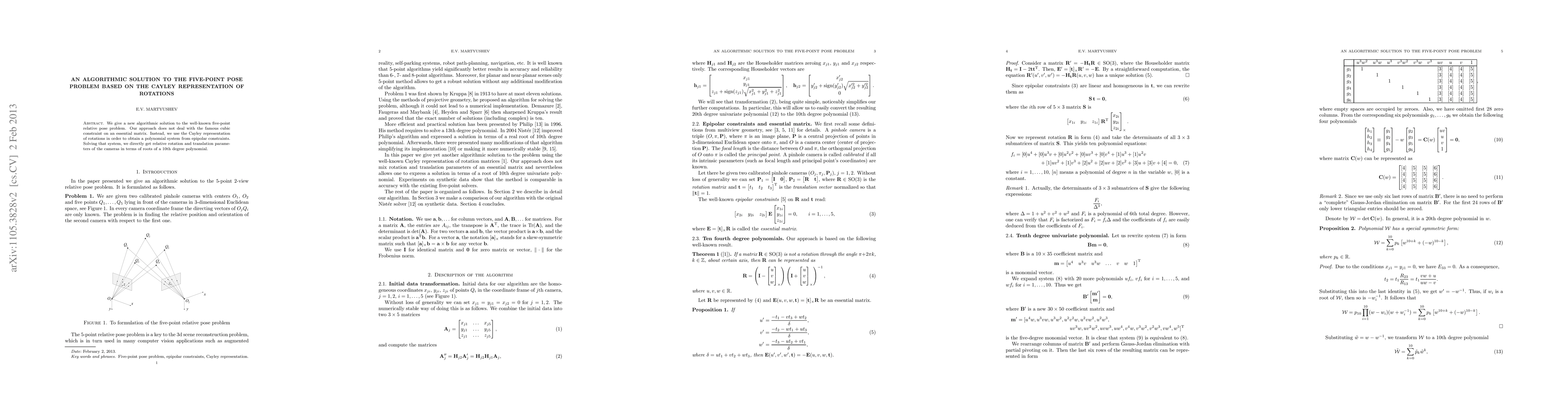 We give a new algorithmic solution to the well-known five-point relative pose problem. Our approach does not deal with the famous cubic constraint on an essential matrix. Instead, we use the Cayley representation of rotations in order to obtain a polynomial system from epipolar constraints. Solving that system, we directly get relative rotation and translation parameters of the cameras in terms of roots of a 10th degree polynomial.