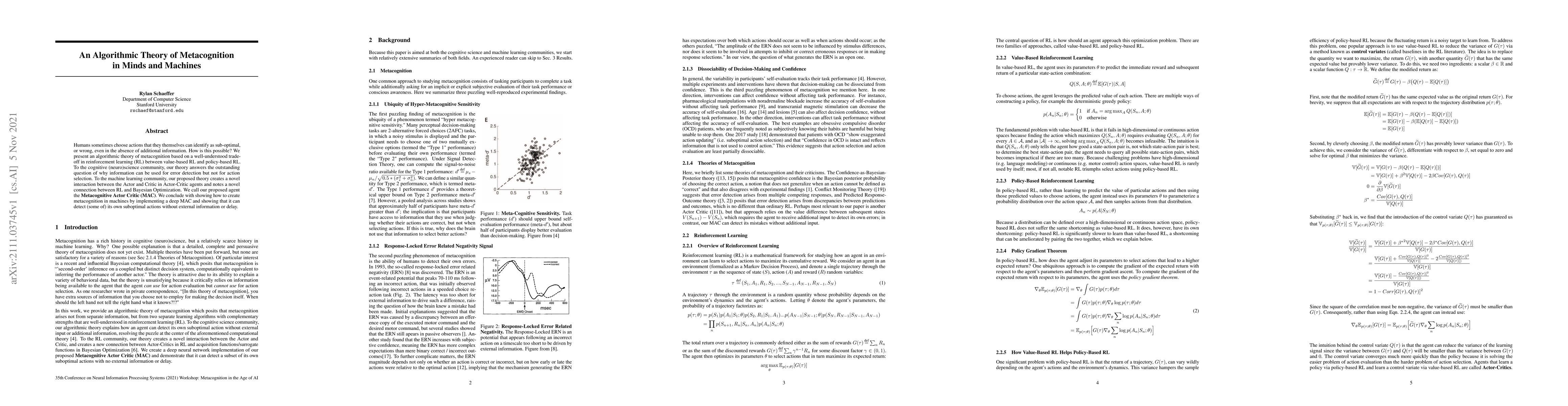 This paper proposes an algorithmic theory of metacognition explaining how agents can detect suboptimal actions, bridging reinforcement learning and Bayesian Optimization. The Metacognitive Actor Critic (MAC) agent demonstrates this capability by identifying its own errors without external information, offering insights for both cognitive science and machine learning.
